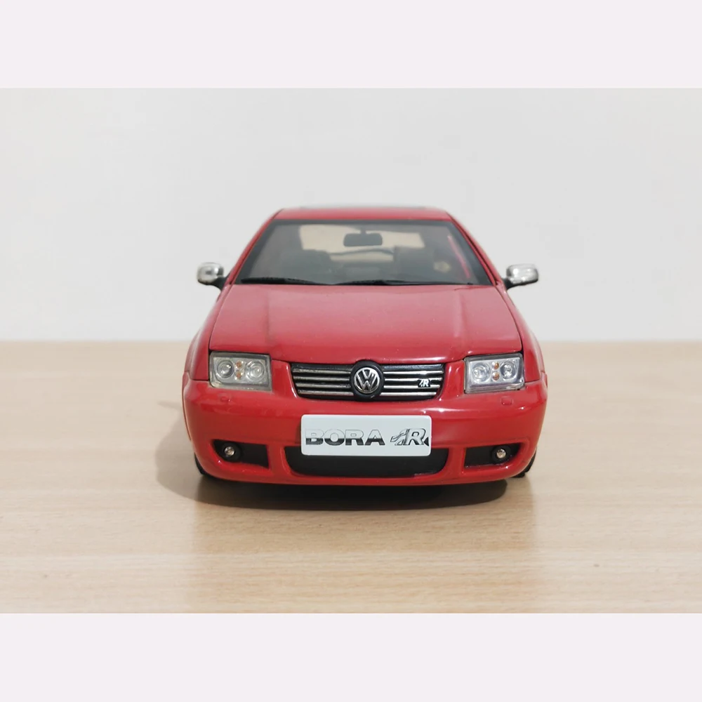 Experience the thrill of owning a highly detailed miniature of the performance-oriented Volkswagen Bora R. Crafted from alloy, rubber, and ABS plastic, this 1:18 scale die-cast model boasts a glossy vibrant red finish that captures the sporty spirit of the original vehicle. Its smooth contours, realistic black grille, and clear headlamps add depth and authenticity, making it an eye-catching display piece. Silver accents on the wheels, side mirrors, and a subtle chrome strip below the windows highlight the refined craftsmanship. Despite minor flaws like missing lampshades and a damaged base plate, this model remains an impressive addition to any collection. Perfect for display, hobbyists, or enthusiasts, it vividly embodies modern automotive design in miniature form.