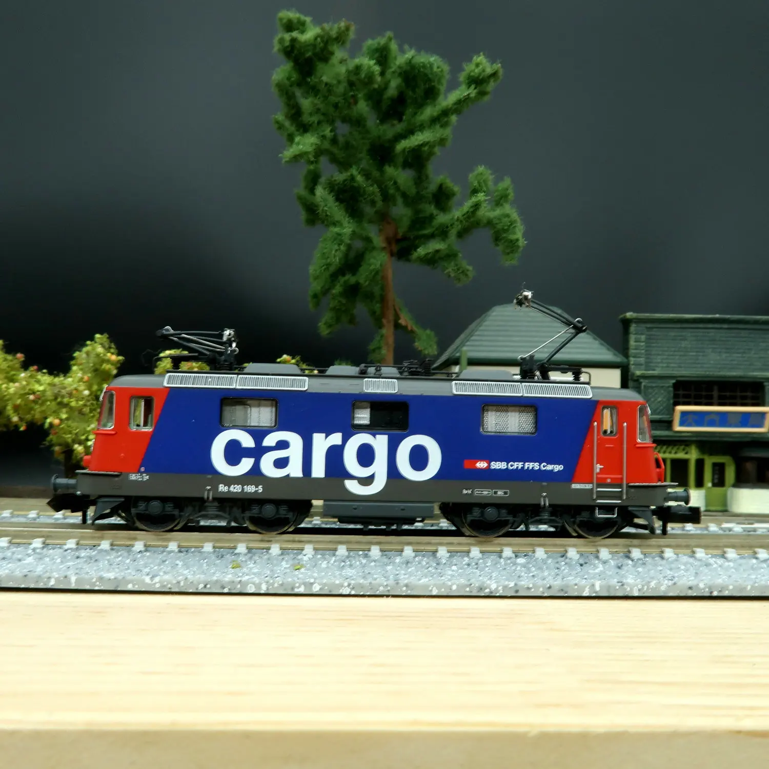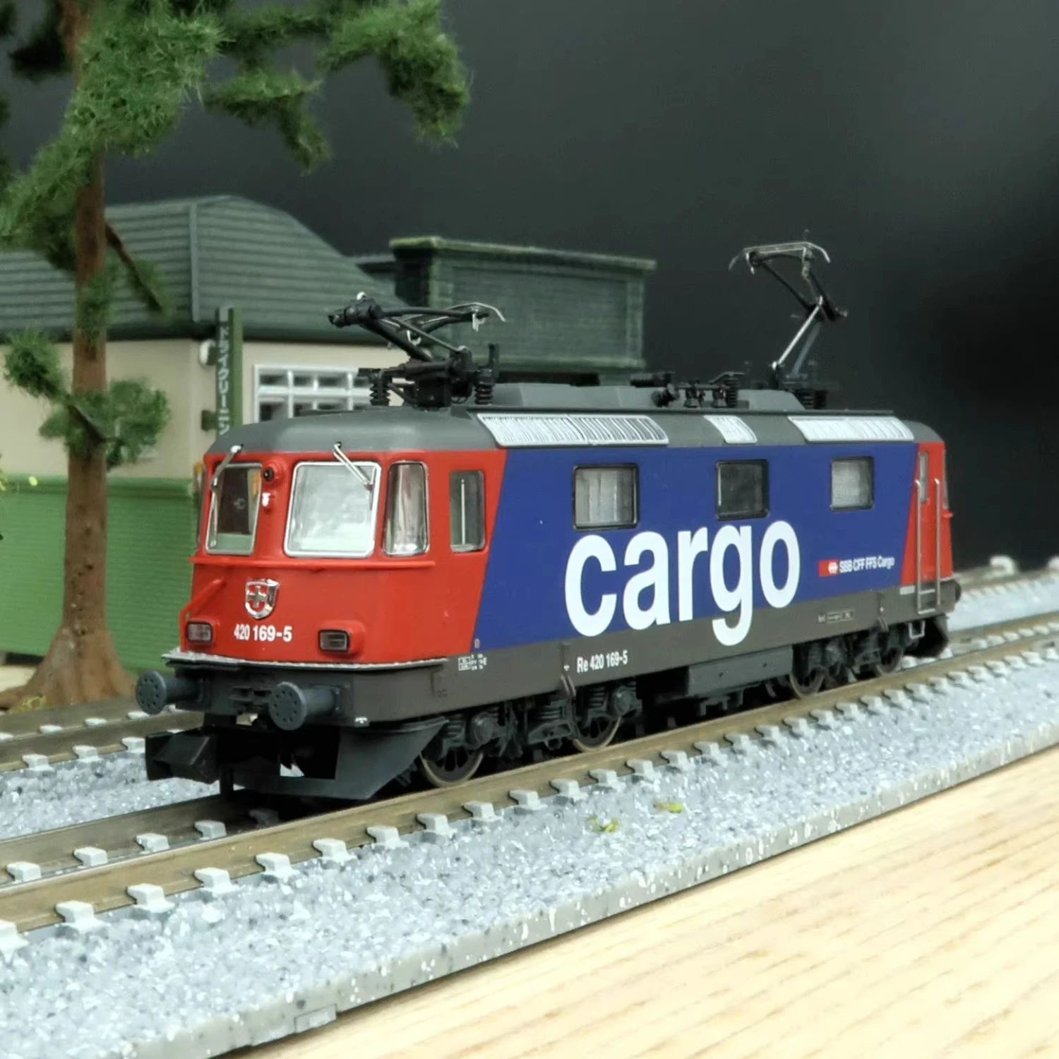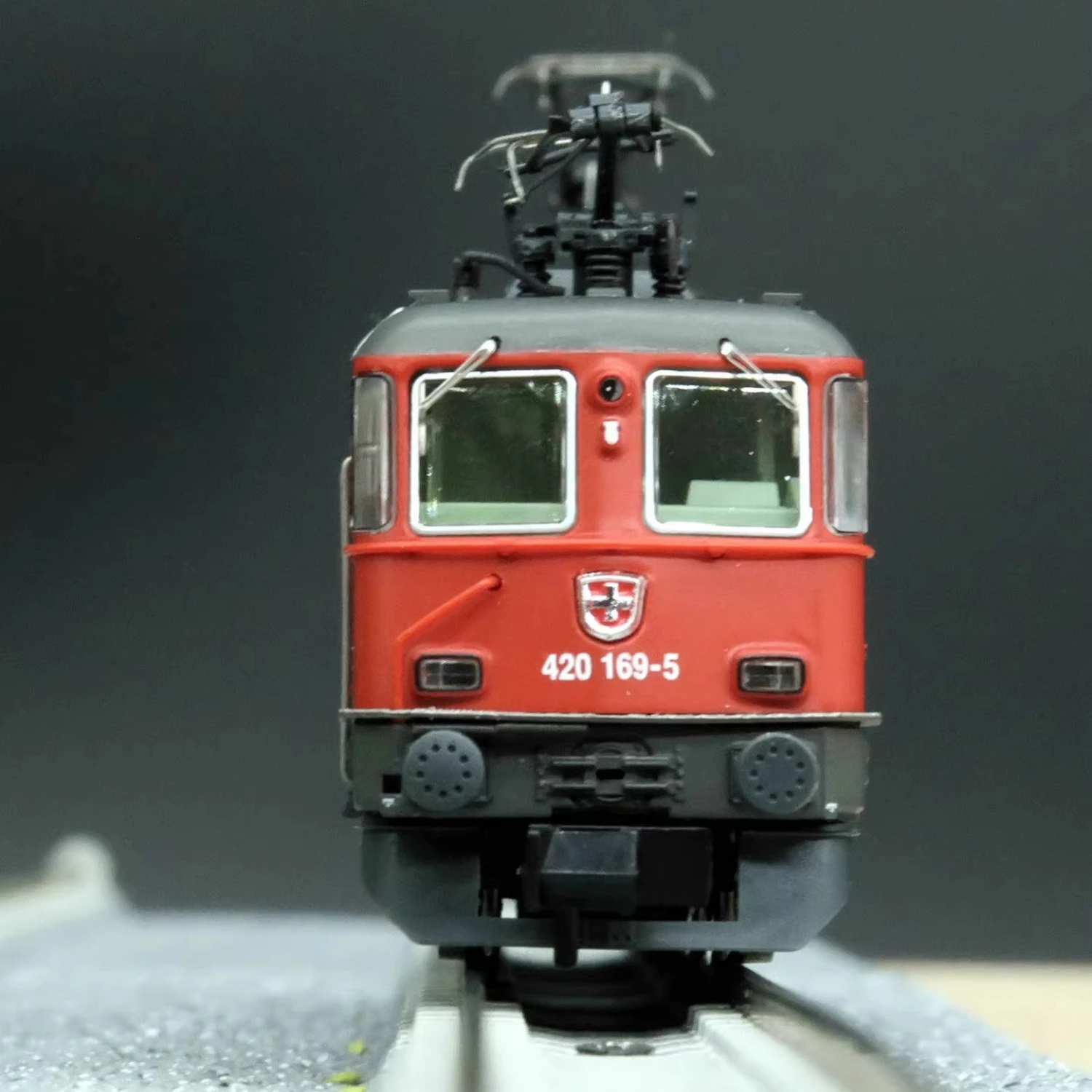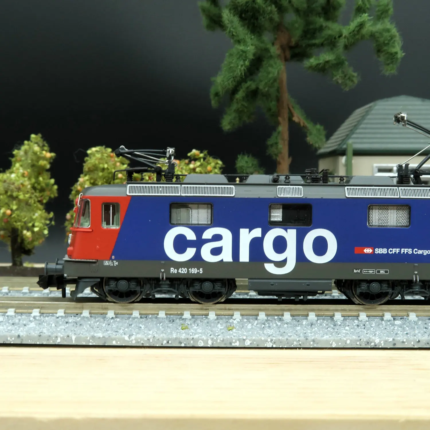 Step into the world of model railroading with this exquisitely crafted FLEISCHMANN RE420 electric locomotive in 1:160 scale. Its sleek, dark gray body is adorned with realistic details, including finely molded vents, ladders, and step plates that enhance its industrial aesthetic. Transparent windows reveal interior components, adding to its authenticity. The roof features lowered pantographs, and the front has LED headlamps that switch directionally, providing lifelike illumination. Equipped with four axles—two fitted with rubber traction tires and flywheels—this model ensures smooth operation around tight curves on your layout. Whether you're a collector or an enthusiast, this meticulously detailed replica captures the essence of modern locomotive design, making its presence on your track both striking and believable.