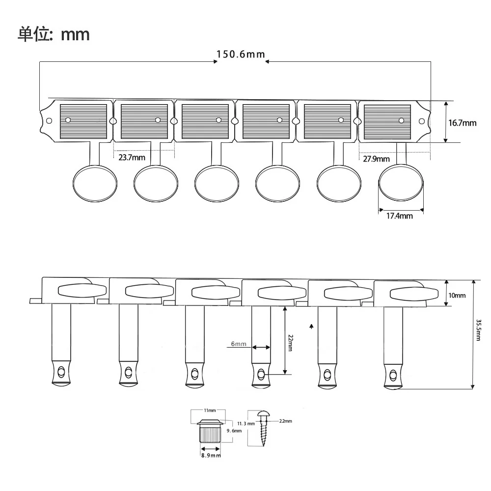 🎸Tuner shaft: about 6mm in diameter.