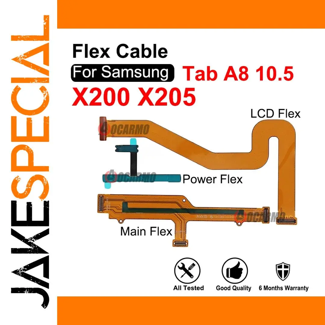 - This set includes the original quality LCD, main, and power flex cables, tailored for Samsung Galaxy Tab A8 models X200 and X205. Each part ensures a perfect, reliable fit for repairs.