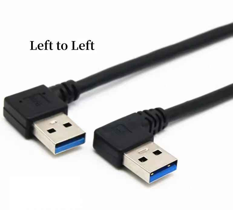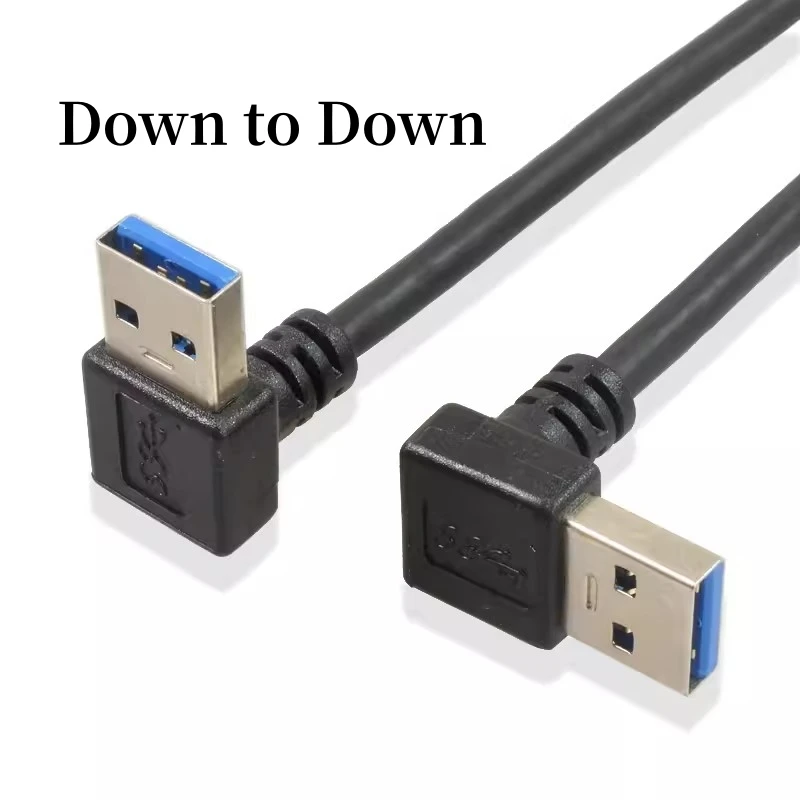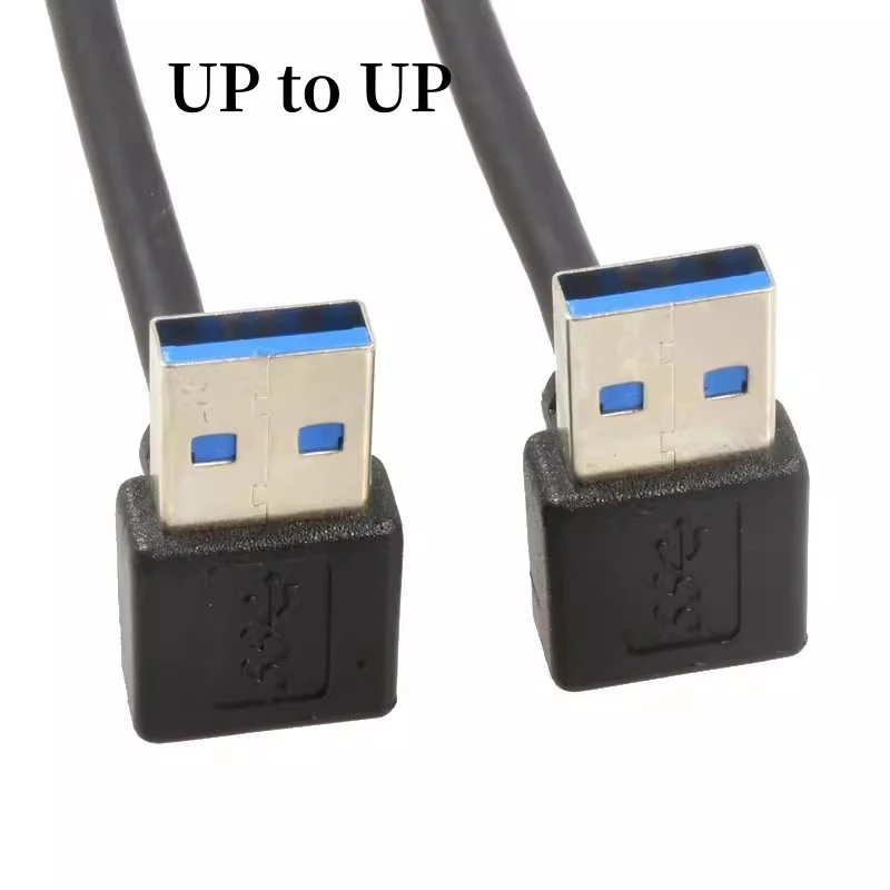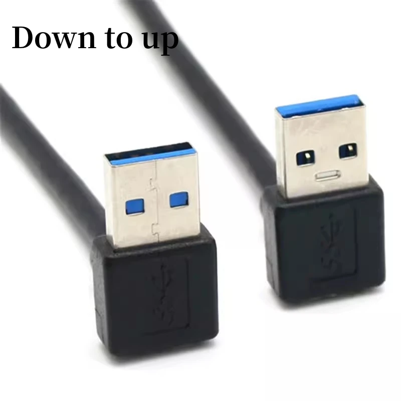 Enhance your connectivity with this durable USB 3.0 dual-head male-to-male data cable featuring a flexible elbow design, available in 0.3m and 0.6m lengths. Its sleek black finish is complemented by vibrant blue interior connectors, supporting high-speed data transfer and power delivery for a wide range of devices including mobile phones, hard disks, set-top boxes, radiators, and graphics cards. Designed for versatile orientations—up, down, left, or right—it ensures reliable, clutter-free connections even in tight spaces. Built with quality materials and CE certified, this cable offers a practical, modern solution for seamless, high-performance data and power transmission.
