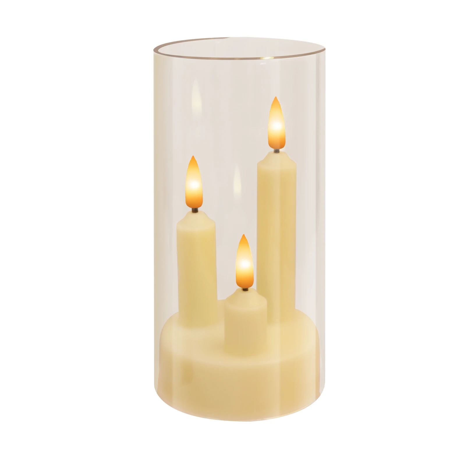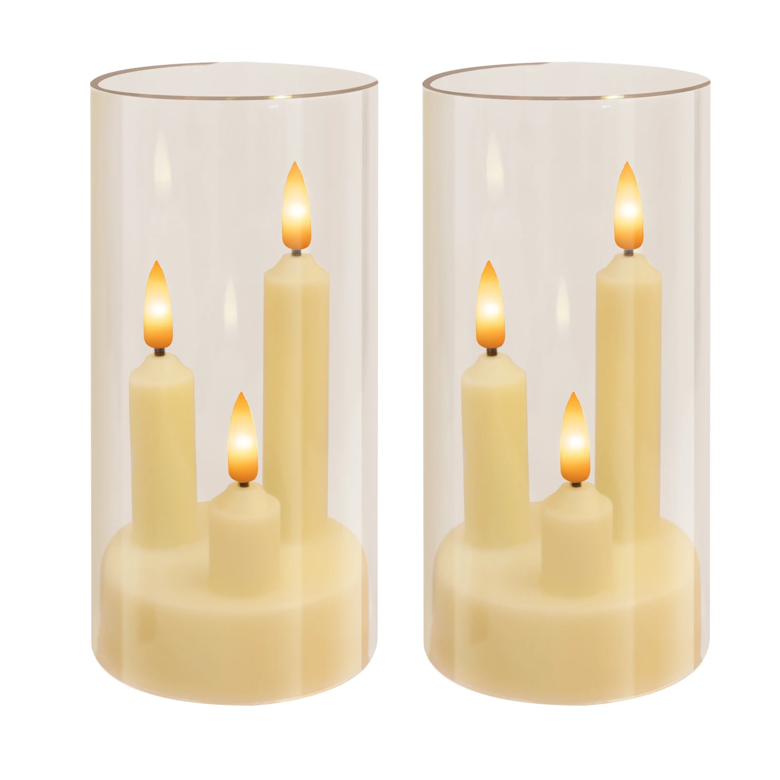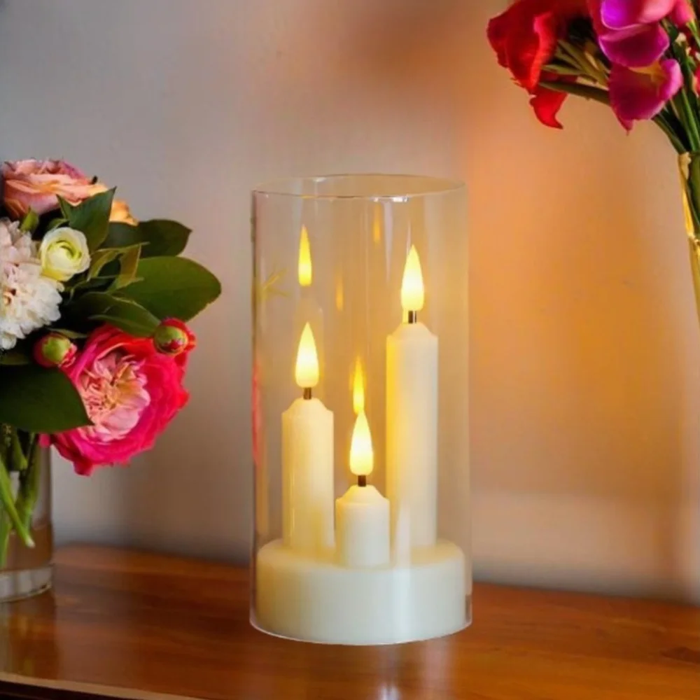 - These realistic candles feature a sleek, minimalist design with tall, slim transparent glass holders, perfectly accentuating the flickering LED flames for a contemporary look.
