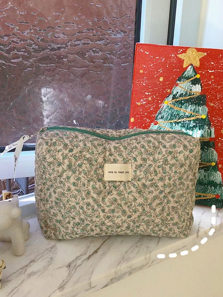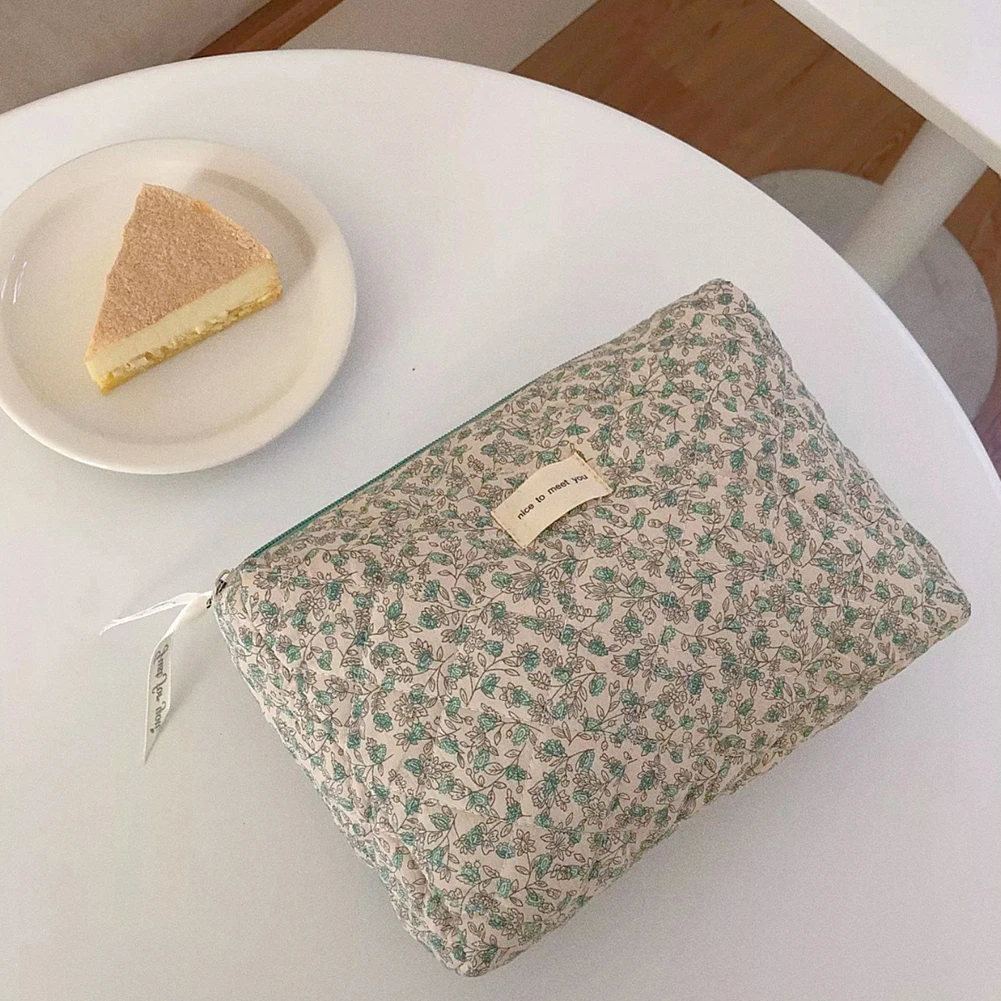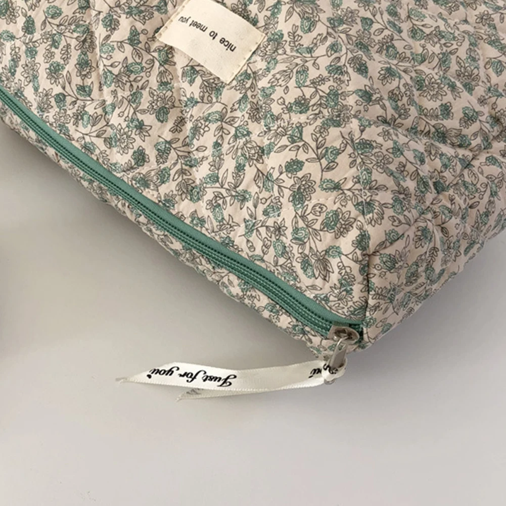 Imagine effortlessly staying organized on your travels or daily routine with this charming floral cosmetic organizer. Crafted from high-quality cotton fabric, it offers a plush, soft surface that feels gentle to the touch. The delicate floral print in muted tones adds an understated elegance, making it an attractive accessory for women and girls alike. Its pillow-like shape and rounded edges provide a cozy, stylish appeal, while the sturdy metal zipper ensures your belongings stay secure. Large enough to hold all your essentials—makeup, skincare, toiletries, or small personal items—this versatile bag combines function with fashion. Compact yet spacious, it’s perfect for keeping everything neat and accessible wherever life takes you.