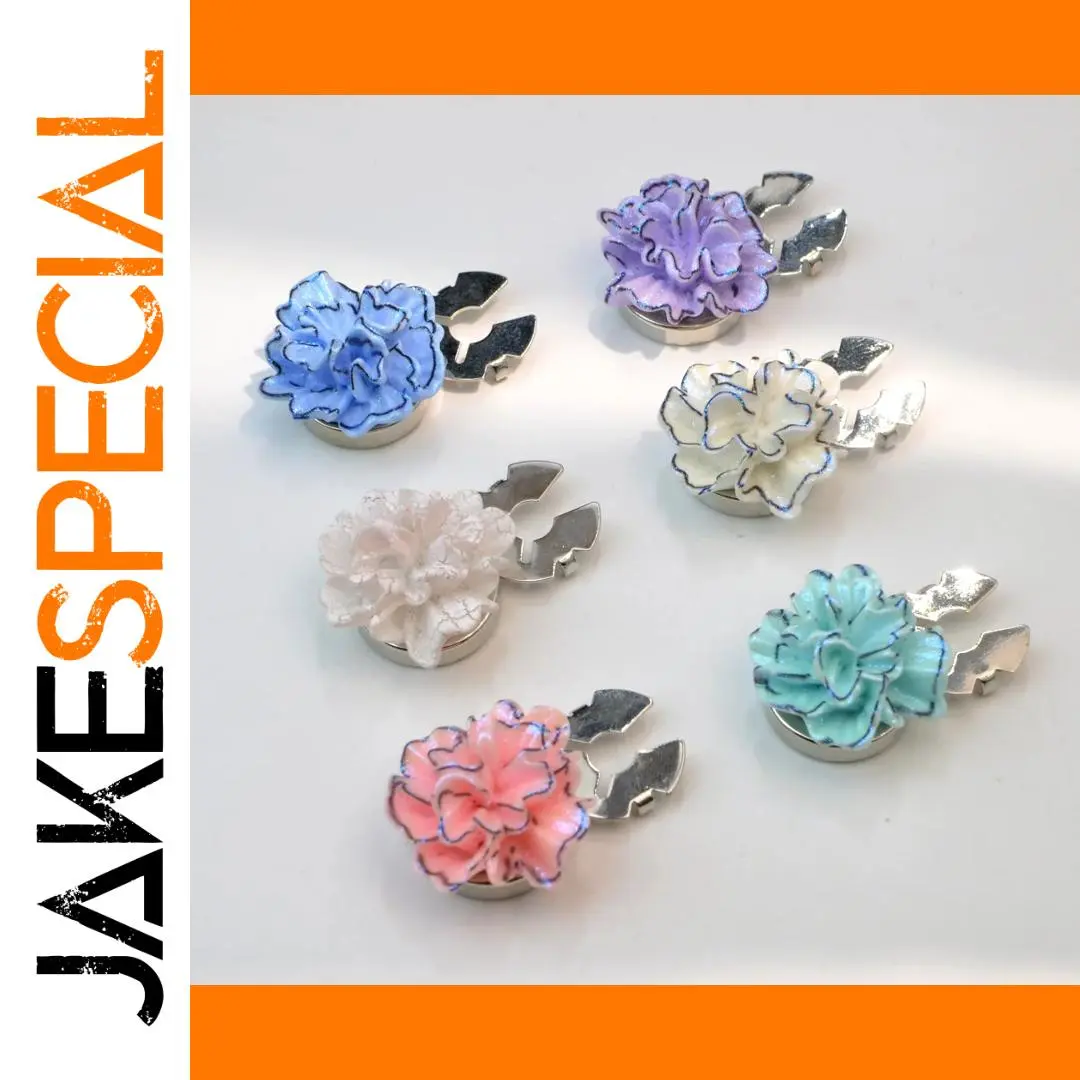 Elevate your wardrobe with these exquisite flower button covers, crafted from shiny alloy metal that gleams with elegance. Each cover features a delightful floral design, showcasing vibrant pastel colors including gradient blue, lavender, white, soft pink, light turquoise, and pale blue. With a three-dimensional ruffled petal effect and intricate leaf-like metal details, these accessories add a unique touch to your jackets, backpacks, and hats. The stylish versatility lends itself well to numerous styles, such as vintage, punk, and minimalist. Picture yourself adorned with these chic embellishments, seamlessly enhancing your fashion statement.