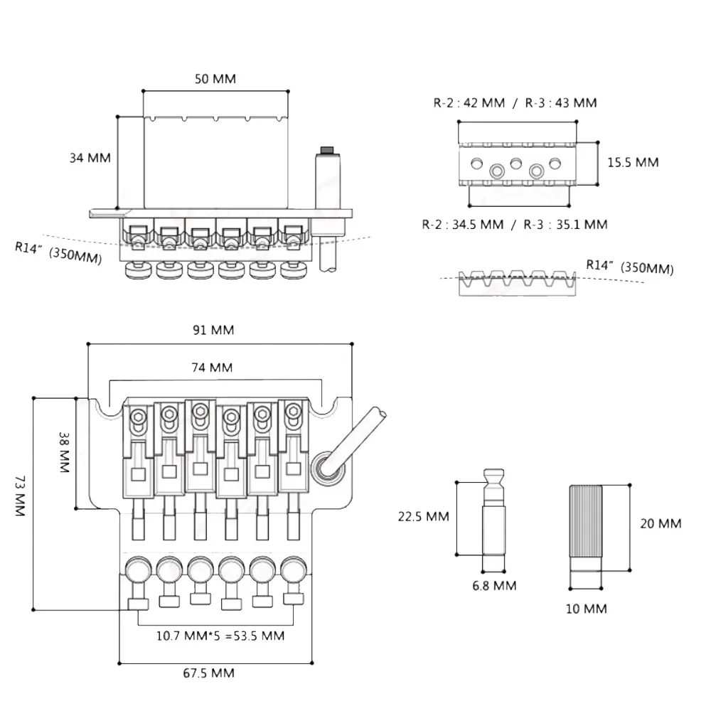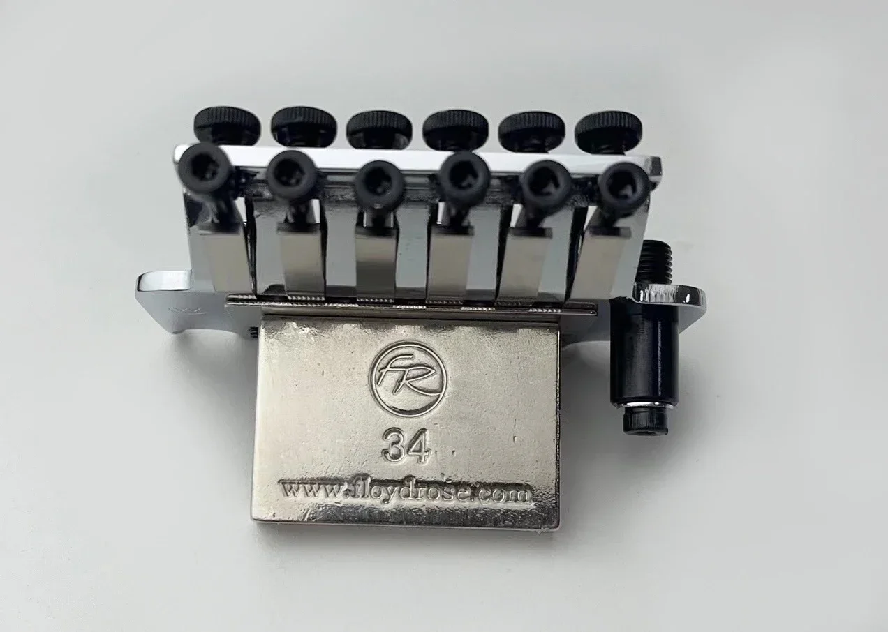 Experience the perfect fusion of precision and style with this high-quality Floyd Rose tremolo system. Crafted from durable metal with a sleek chrome finish, this system offers a polished, reflective surface that adds a modern touch to your guitar. Weighing approximately 530 grams, it provides a sturdy foundation for intricate pitch modifications. The system includes a robust 34mm block and a versatile nut size of either 42mm or 43mm, available in black, chrome, or gold to match your aesthetic preferences. Designed specifically for professional and customized guitar setups, it ensures exceptional tuning stability, expressive vibrato effects, and refined craftsmanship. Trust in this system to elevate your playing experience to new heights.