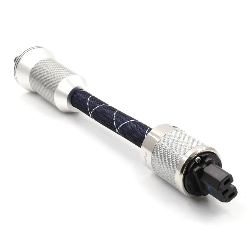 Experience superior audio and multimedia performance with this Flux-50 NFC power filter cable. Designed for audiophiles and enthusiasts, it provides noise reduction and vibration isolation through high-quality materials and advanced engineering. With a sleek, high-tech aesthetic, the cable’s vibrant purple-red outer sheath blends durability with style, complemented by a black nylon braid for extra robustness. Its semi-transparent inner sheath reveals intricately arranged α (Alpha) OCC conductors with red, white, and green insulation layers, showcasing precision craftsmanship. The gold-plated, nonmagnetic copper alloy connectors feature carbon fiber shells, ensuring secure, reliable connections. Whether connecting to a power distributor or high-fidelity components, this cable delivers clean, noise-free power transfer, elevating your audio experience to new heights.