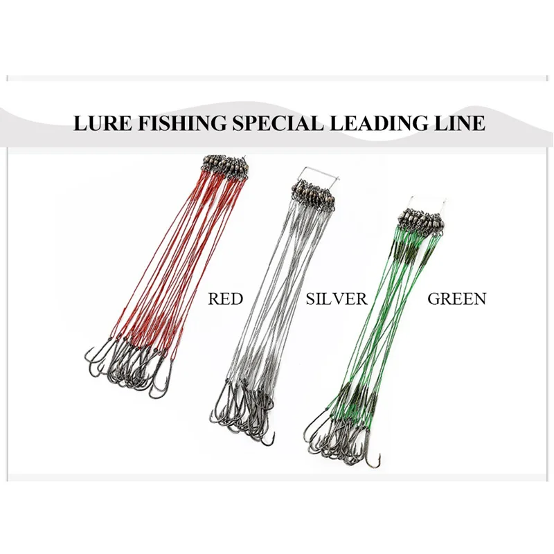 Experience the confidence of using this high-performance, anti-bite steel fishing line from FLYSAND, designed for serious anglers. Crafted from durable stainless steel wire with a sleek, high-shine finish, this line offers unbeatable abrasion resistance, perfect for saltwater environments. Its sharp #1 hooks (13mm x 31mm) are securely attached with sturdy stainless steel rings, ensuring reliable hooking and strength. The included swivel with a fast-lock snap allows quick setup and changeovers. Available in vibrant green, gleaming silver, and bold red, the lines are tailored for various fishing conditions—whether from a boat, rocks, beach, or freshwater. With lengths ranging from 12cm to 25cm and a 50LB capacity, this set combines reliability and versatility for your next fishing adventure.