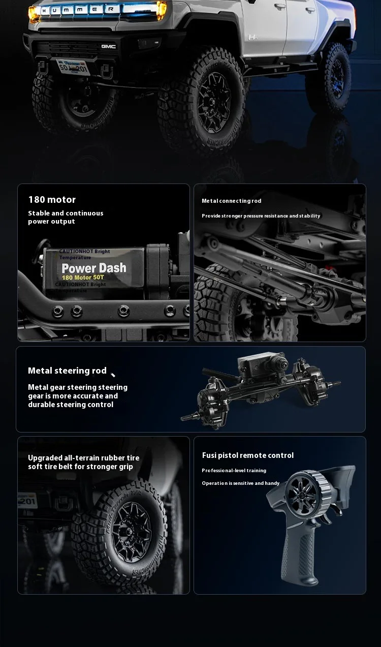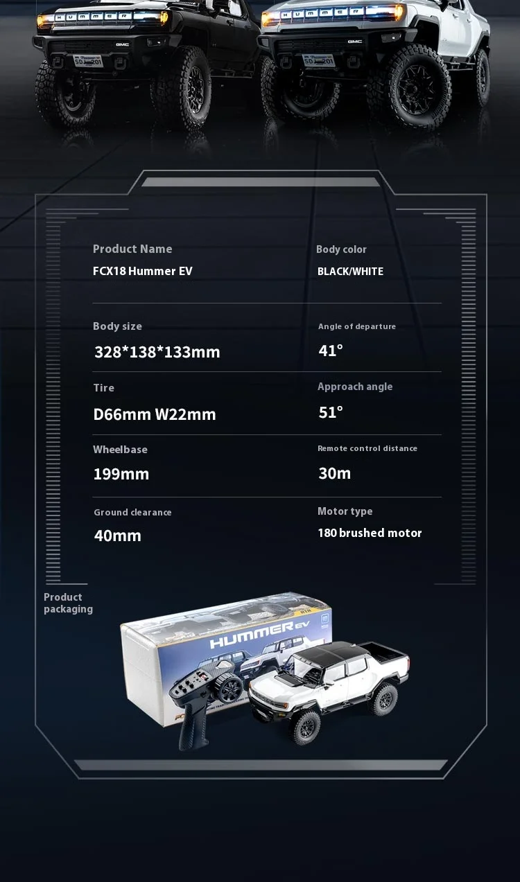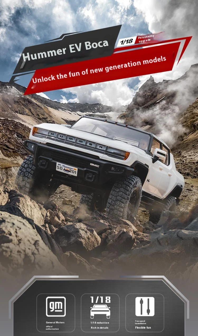 Experience the thrill of off-road adventure with the FMS 1/18 Fcx18 GMC Hummer EV RTR RC Car. Designed for enthusiasts, this rugged and realistic miniature features a durable alloy build, a powerful lithium battery, and a remote control with a 30-meter range. Perfect for capturing the excitement of climbing and off-road driving, it offers up to 30 minutes of nonstop playtime. Ready-to-run and scaled at 1:18, this electric RC vehicle is an ideal gift for hobbyists aged 14 and up. Bring your passion for remote control cars to life with this high-quality, off-road pickup that combines performance, realism, and fun.