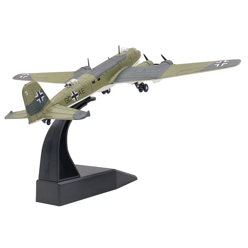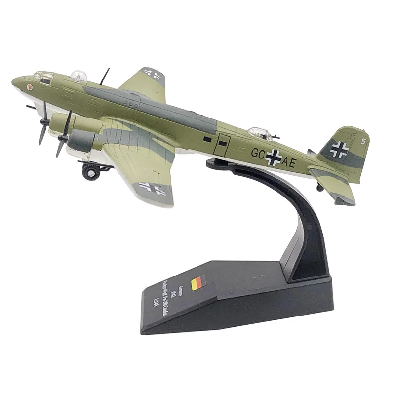 Step into a world of aviation history with this meticulously crafted 1:144 scale diecast model of the Focke-Wulf Fw200 Condor patrol plane. Featuring an authentic camouflage pattern in shades of green, accented with black and white WWII German military markings, this model captures the rugged elegance and precise design of the original aircraft. The finely detailed surface showcases realistic panel lines, contours, and engine exhaust outlets, adding a true-to-life appearance. Its sleek fuselage and wings, made from high-quality alloy, ensure durability and visual appeal. With transparent cockpit canopies revealing internal detailing, this model is perfect for collectors who value craftsmanship and historical accuracy. Its compact size makes it an impressive display piece.