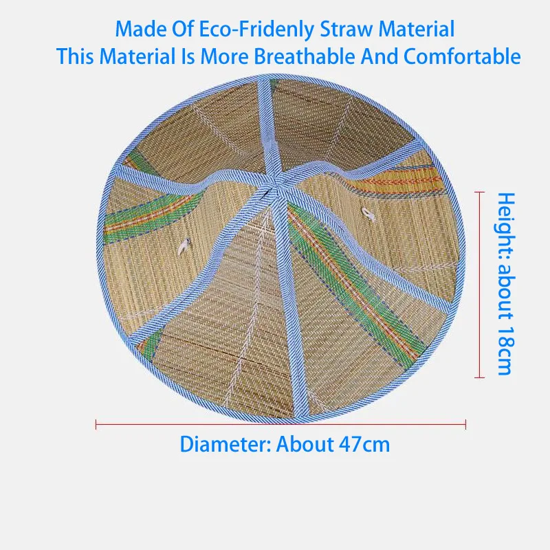Experience ultimate sun protection with this lightweight, breathable foldable straw hat featuring a large 47 cm diameter brim and 18 cm height. Crafted from natural straw, it offers comfortable outdoor wear while providing broad coverage to shield your face and neck during gardening, fishing, or site work. The adjustable windproof rope ensures a secure fit for most head sizes, and its foldable design makes it easy to carry and store, making it perfect for active outdoor enthusiasts seeking practical style and sun safety.