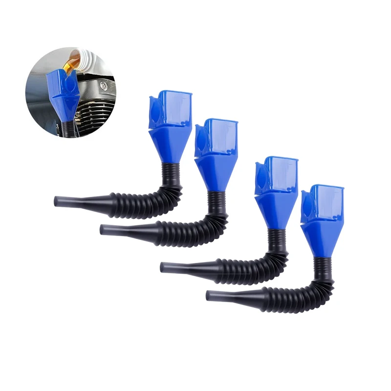 Experience the convenience and efficiency of this high-quality, portable fuel funnel designed specifically for vehicle refueling tasks. Crafted from durable ABS plastic, it measures just 4.5 cm by 4.5 cm by 11.5 cm, making it easy to handle and store. Its vibrant blue color and sleek, streamlined design ensure a modern, practical aesthetic fit for any garage or workshop. The wide, smooth conical top allows for effortless pouring of gasoline or engine oil, tapering seamlessly into a ribbed, flexible black hose that fits securely into various fuel or oil tanks. Whether transferring liquids into cars, motorcycles, or small engines, this set simplifies maintenance and refueling procedures, combining portability and performance in one essential tool.