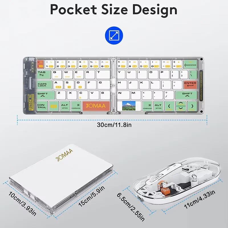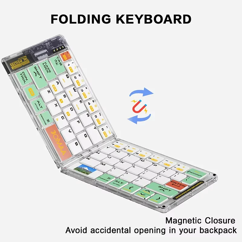 - The fully foldable, compact Bluetooth keyboard combines durability with portability, featuring impact-resistant ABS+PC casing and a sleek, impact-proof, anti-fingerprint, anti-slip matte finish surface.