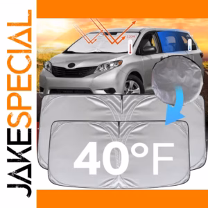 Experience ultimate protection with this foldable car windshield sun shade cover, available in two sizes: approximately 140 cm x 70 cm and 150 cm x 80 cm. Crafted from coated silver cloth with a reflective metallic surface, it effectively blocks UV rays and reduces heat buildup, keeping your vehicle cooler. Its sleek, modern design features curved edges and a high-gloss finish for added style. Easy to open or fold in seconds, it includes a compact storage bag for convenience and portability. Perfect for exterior application on front windows, this sunshade offers a reliable, high-quality solution to protect your vehicle’s interior from harmful sun damage and excessive heat.