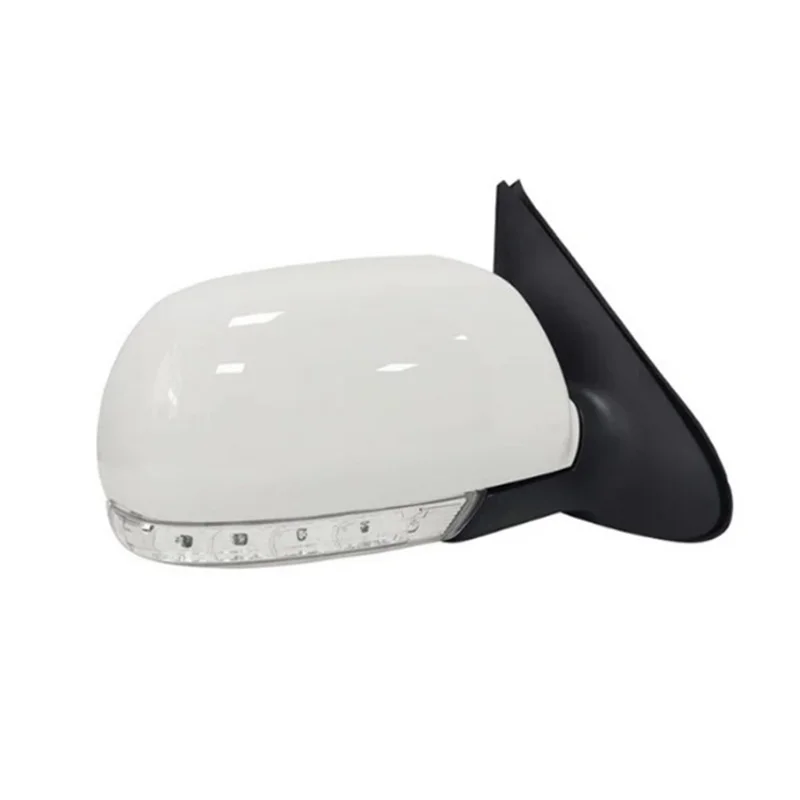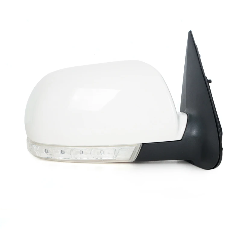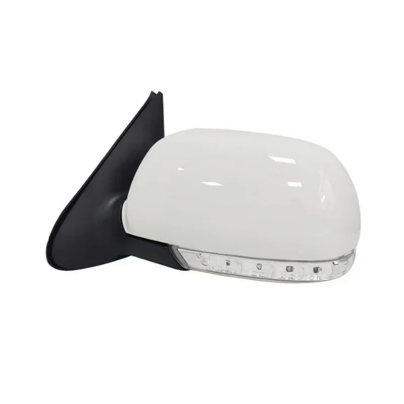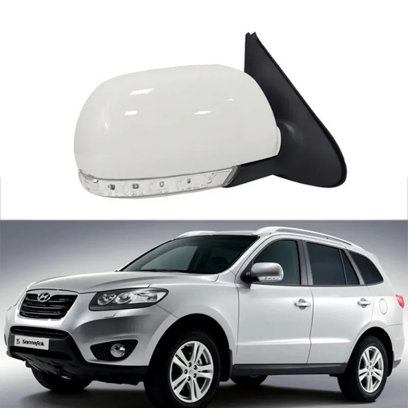 Upgrade your Hyundai Santa Fe from 2008 to 2012 with this premium folding side rearview mirror, designed to enhance both functionality and aesthetic appeal. Featuring a sleek, aerodynamic profile, the glossy white exterior casing provides a modern look while contrasting beautifully with the black plastic base. The clear glass reflective surface ensures optimal visibility, while integrated LED turn signals enhance your safety on the road. With options ranging from 5 to 8 pin configurations, you can customize the functionalities to suit your driving style, including electric adjustments, folding features, and even mirror heating.