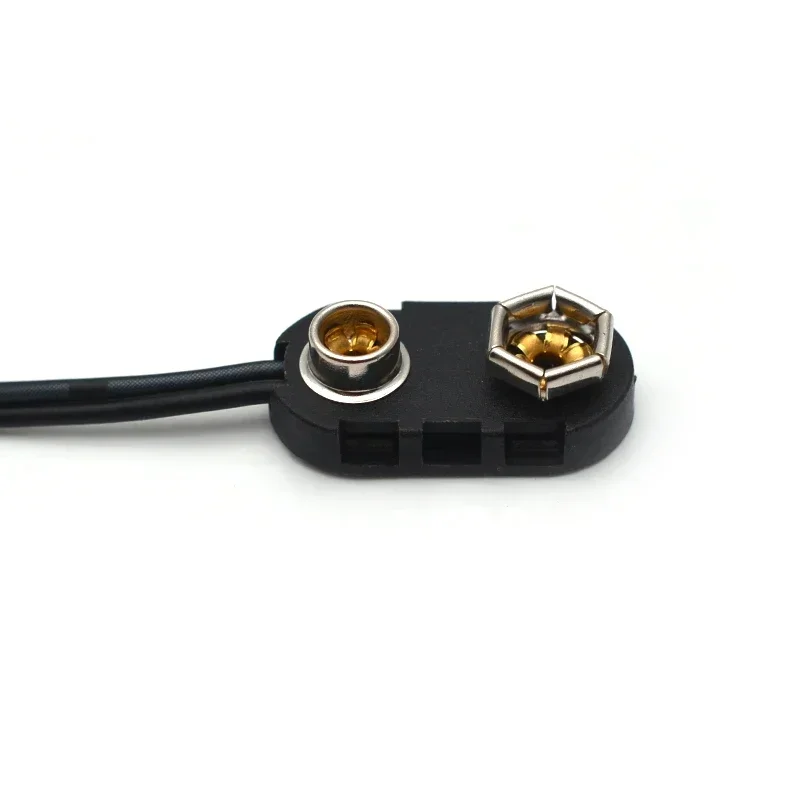- The connected cables are neatly coiled and secured, with a black and white braided wire ending in a gold-plated 3.5mm stereo jack and a dual-pin connector, ensuring high-quality signal transfer.