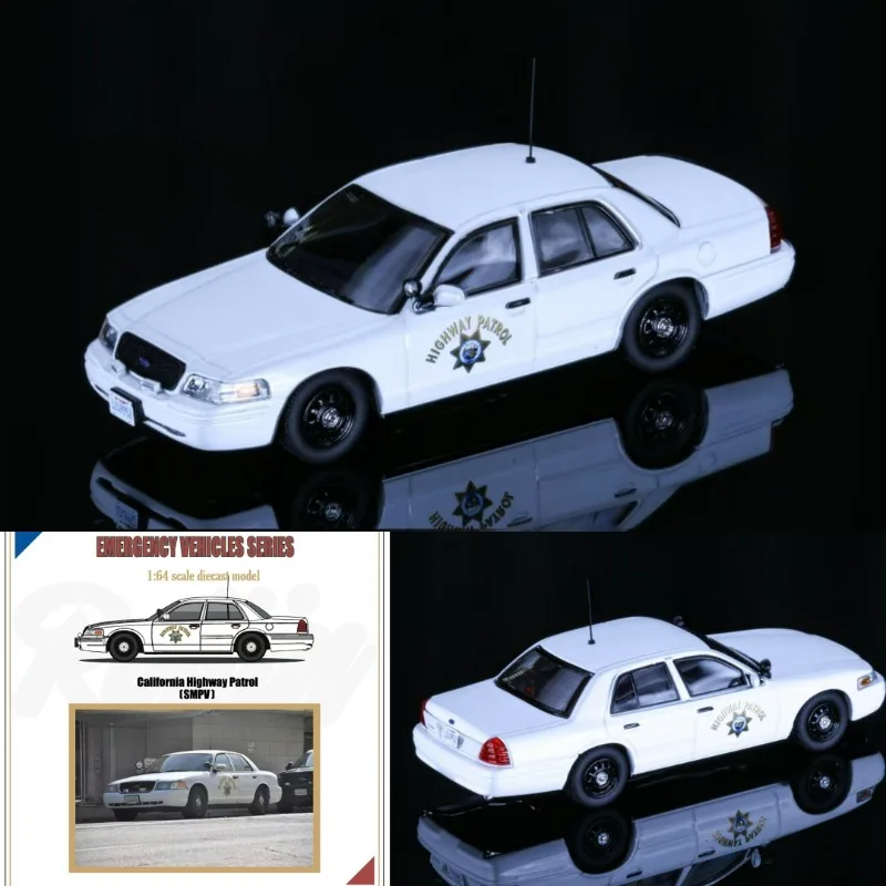 Bring home a highly detailed 1:64 scale Ford Crown Victoria Police Interceptor diecast model, crafted from metal, plastic, and rubber with an alloy finish for a realistic look. The sleek, glossy white body features accurate contours, window details, and door lines, complemented by a front grille, headlights, black side mirrors, and textured black wheels with rubber tires. A small antenna on the roof and the “HIGHWAY PATROL” emblem add authentic police vehicle touches. Available in two colors labeled ‘A’ and ‘B,’ this non-electric collectible is ideal for display or gifting, perfect for enthusiasts aged 14 and above.