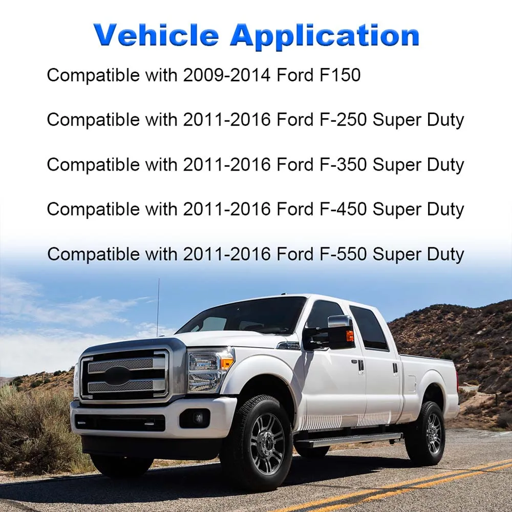 - Designed as a direct replacement for Ford models 2009-2014 F150, 2011-2016 F-250, F-350, F-450, and F-550 Super Duty trucks, ensuring perfect fit and compatibility.