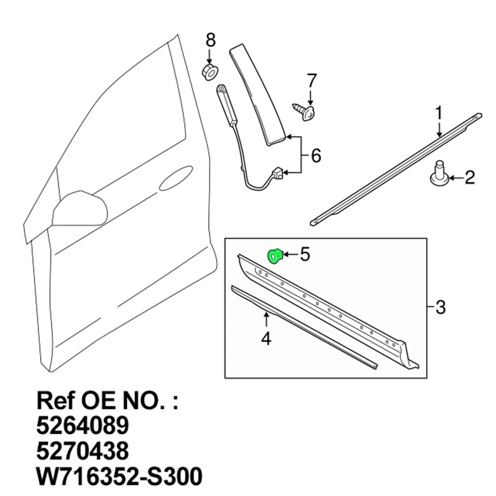 - OE reference numbers: 5264089, W716352-S300, 5270438.