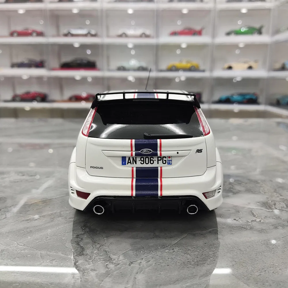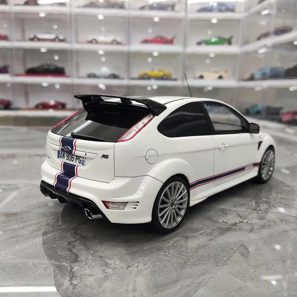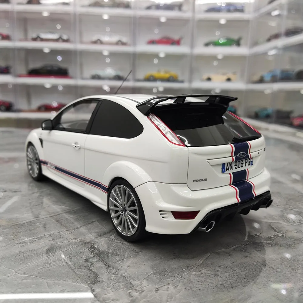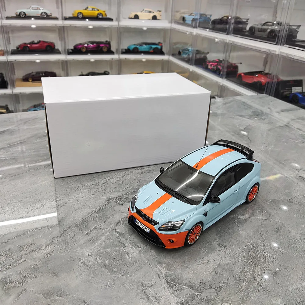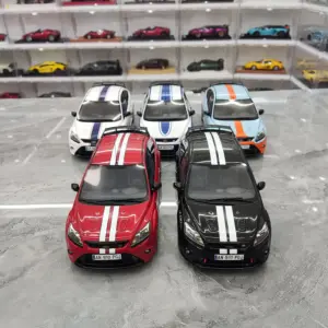 Immerse yourself in the detailed design of this 1:18 scale resin car model of the Ford Focus Mk2 RS, measuring approximately 24 cm in length, 10.8 cm in width, and 7.6 cm in height. Crafted from resin, plastic, and rubber, it features fully enclosed construction with functional, turnable wheels, capturing the sporty and aerodynamic aesthetic of the original. The glossy finish showcases bold racing stripes, including double white stripes on a sleek red or black body, or vibrant blue and orange accents. Perfect for collectors and display enthusiasts, this non-electric model is ideal for home decoration, gifts, or admiration, with minor paint imperfections adding to its authentic charm.