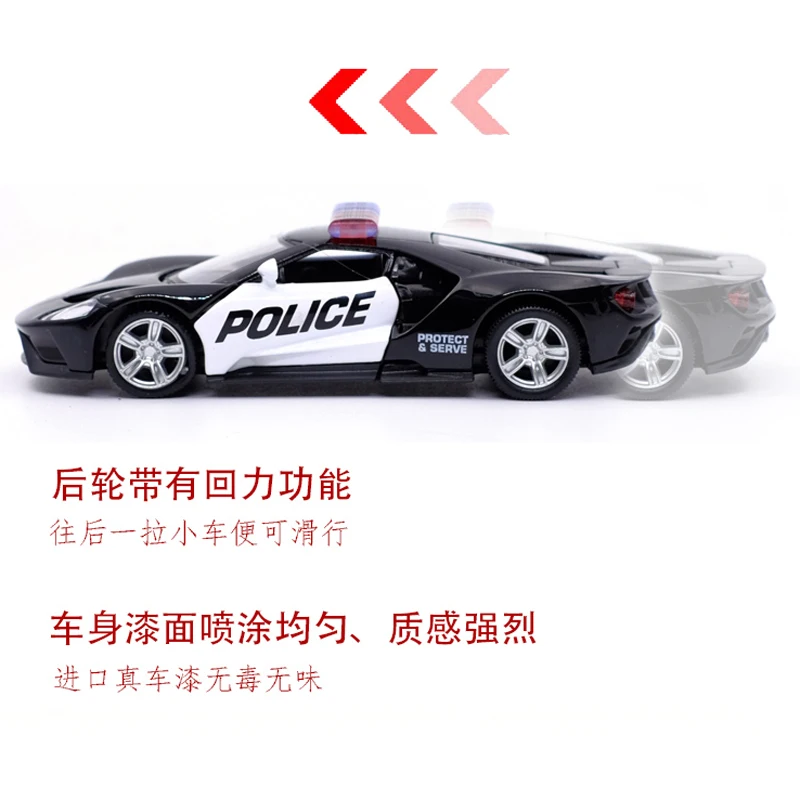 - Authentic 1:36 scale replica with intricate detailing, capturing the sporty and sleek design of the Ford GT police vehicle.