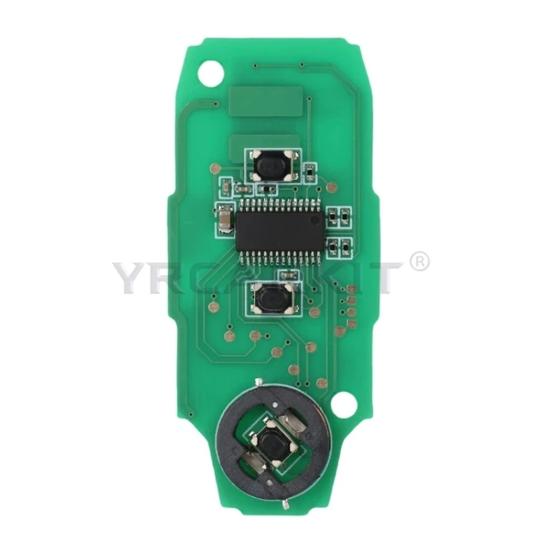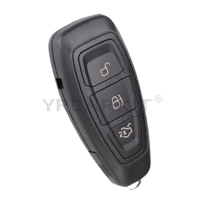 Experience seamless unlocking with this stylish, black-colored Ford remote key designed for a perfect fit. Its sleek, matte finish complements your vehicle’s aesthetic, while the compact, streamlined design ensures comfortable handling. Inside, it features a precisely organized green circuit board with tiny resistors, capacitors, and a microchip, all crafted for durability and reliable performance. The remote includes a metal blade key, offering manual access when needed, adding a layer of security. Its minimalist three-button layout with easy-to-understand icons makes locking, unlocking, and trunk release straightforward. With a 433MHz frequency, this replacement key integrates naturally into your vehicle’s system, offering you peace of mind, style, and modern functionality all in one.