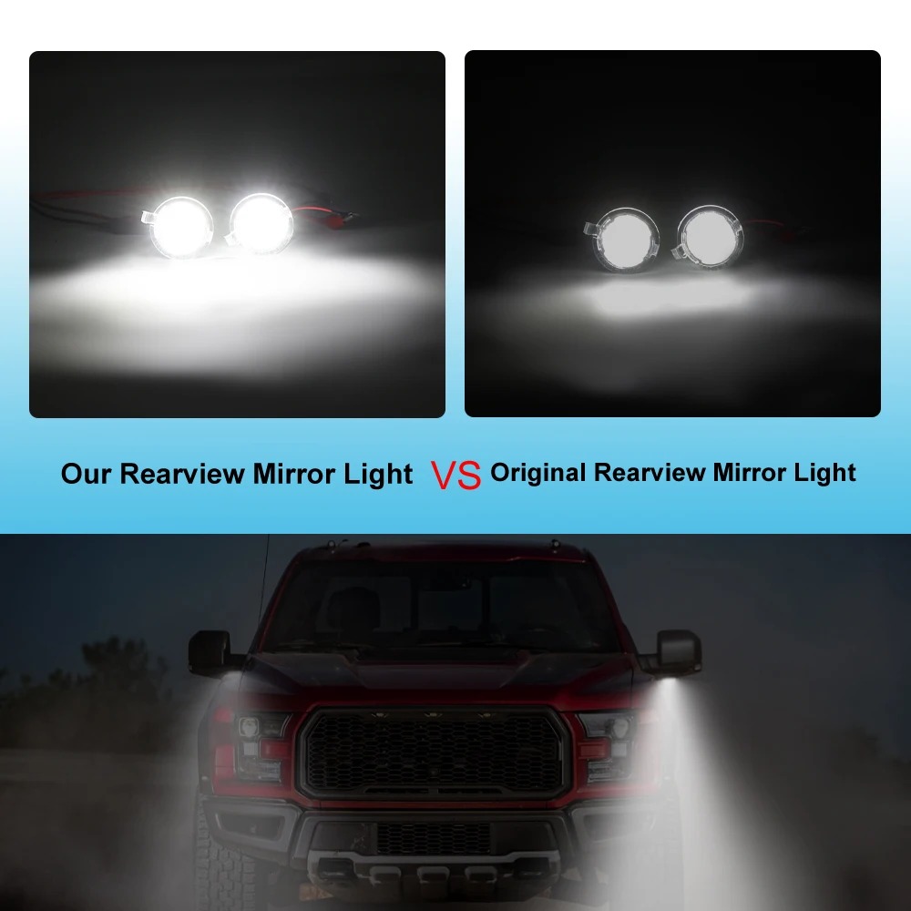 - Includes two rearview mirror lights with OEM number 1604303136, compatible with various Ford models including Explorer, Everest, Expedition, Taurus, F150 Raptor, Range, and more.