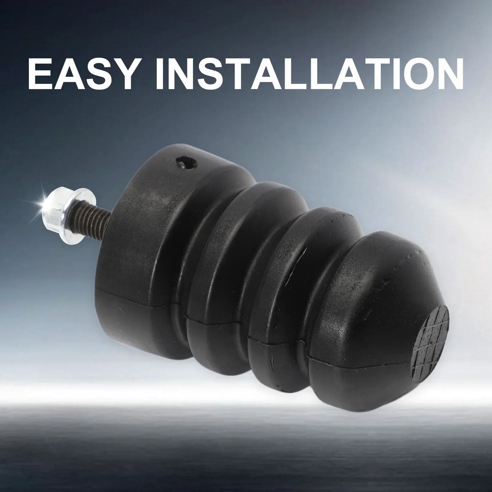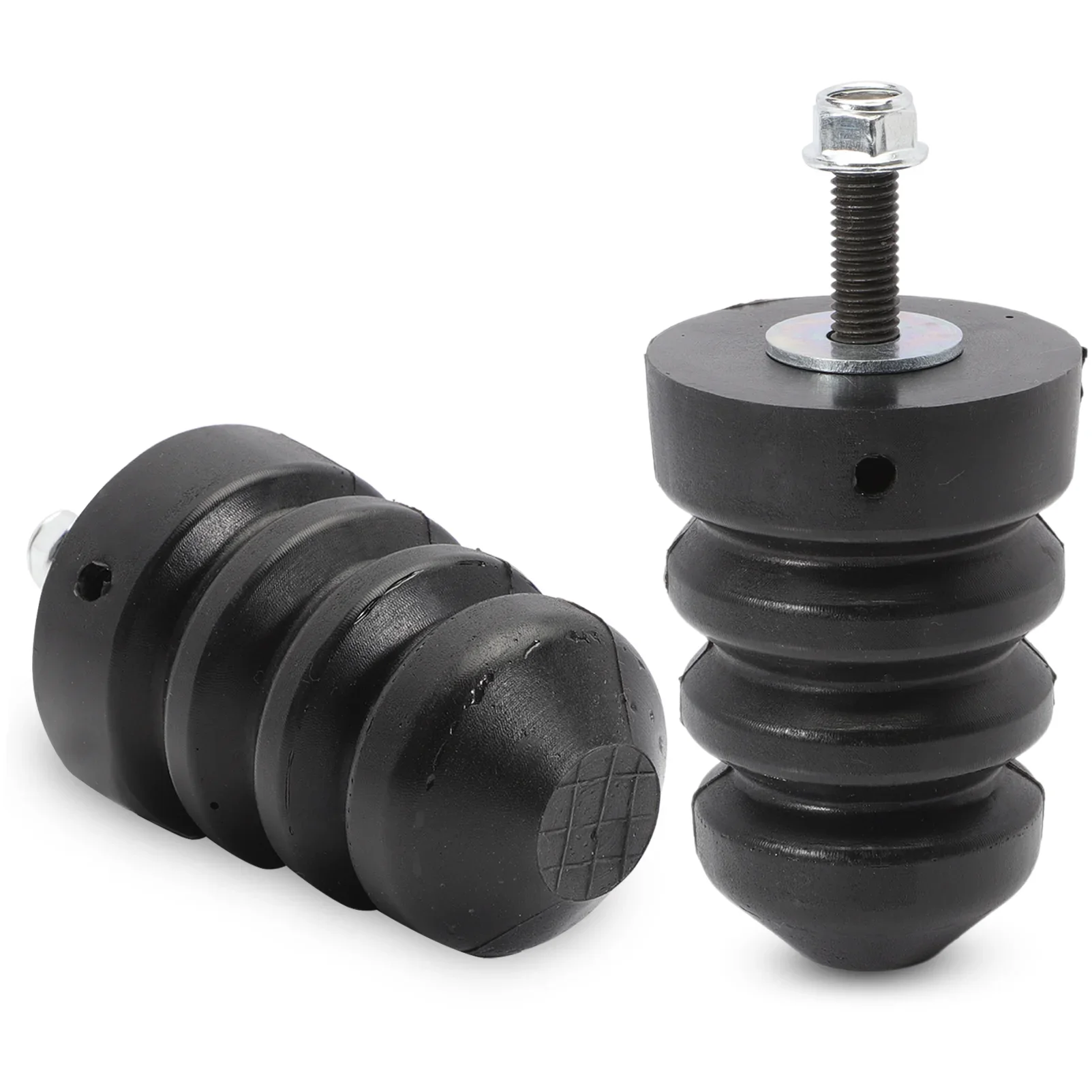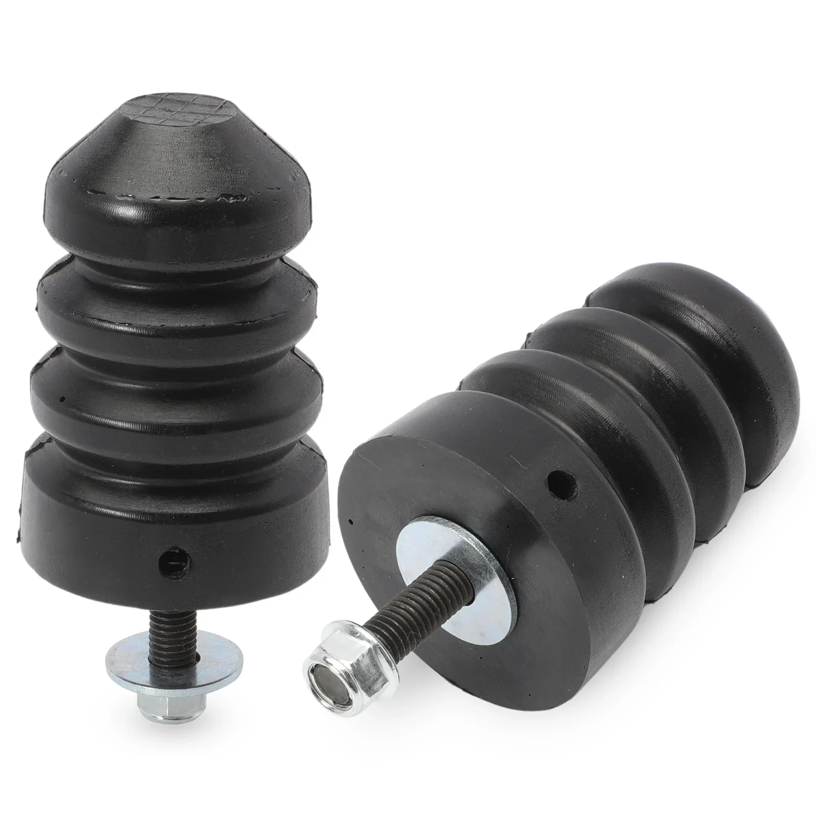 Enhance your vehicle’s ride with this set of two durable polyurethane rear leaf spring bumpers, designed for long-lasting performance and reliable support. Compatible with Ford Excursion (2000-2005), F250 Super Duty (2005-2016), and F350 Super Duty (2005-2019), these bumpers offer easy installation as direct replacements. Crafted from high-quality polyurethane, they feature a sleek, matte black finish with a cylindrical, slightly tapered design and a hollow center for a practical, minimalistic look. Secure with metal bolts, they undergo rigorous testing to ensure durability and safety, making them an ideal upgrade for your vehicle’s suspension system.