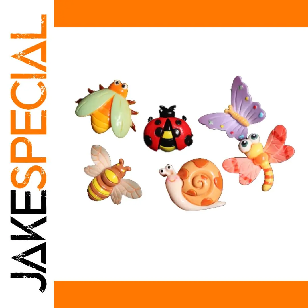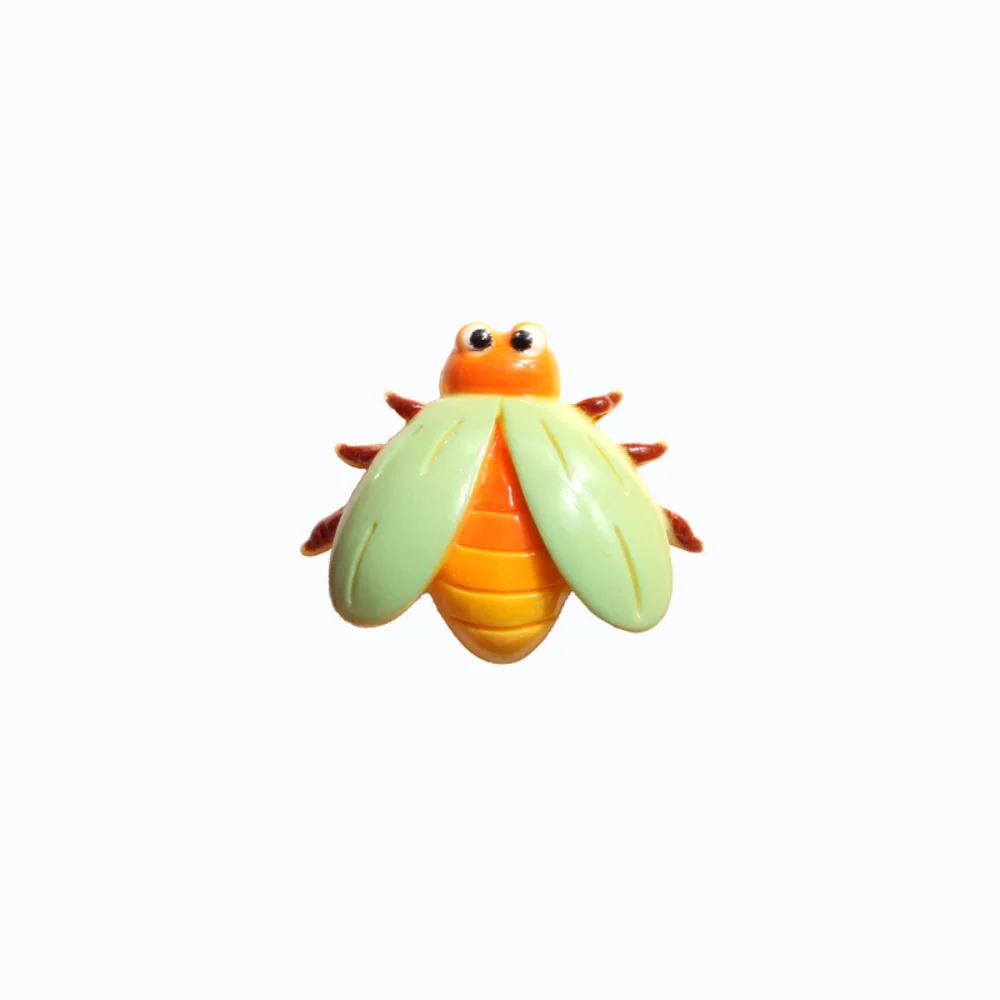 - Designs include a cheerful bee with green wings, a classic ladybug with black spots, a purple butterfly with multicolored dots, and an orange snail with a spotted shell.
