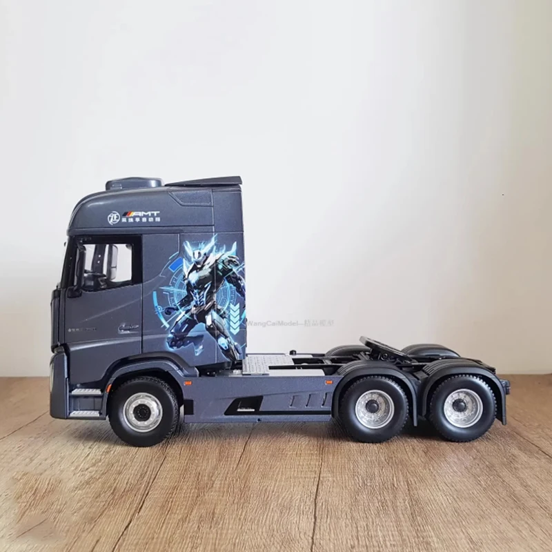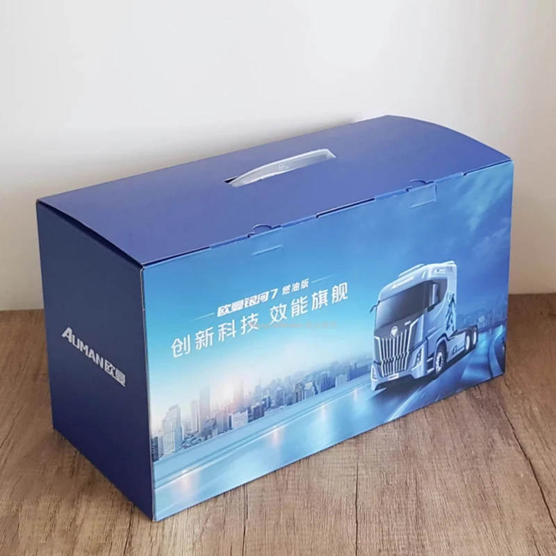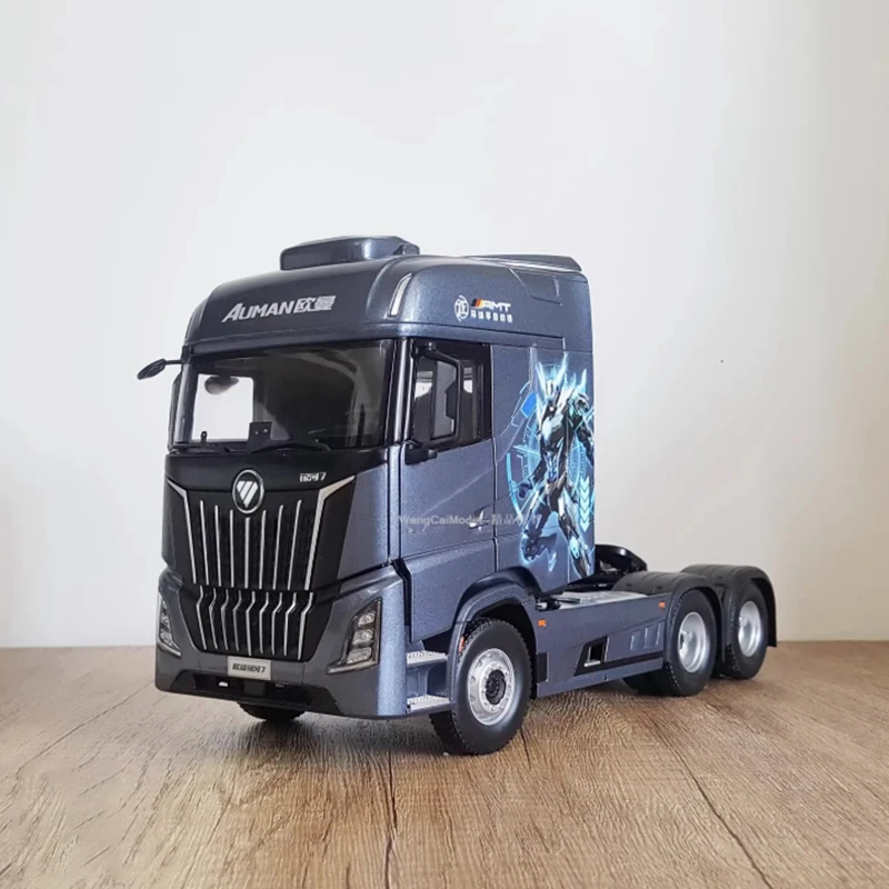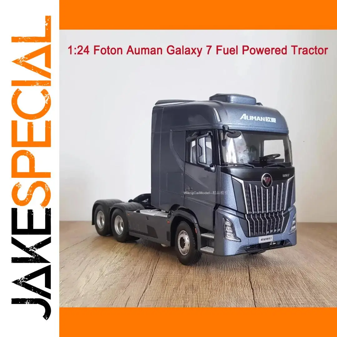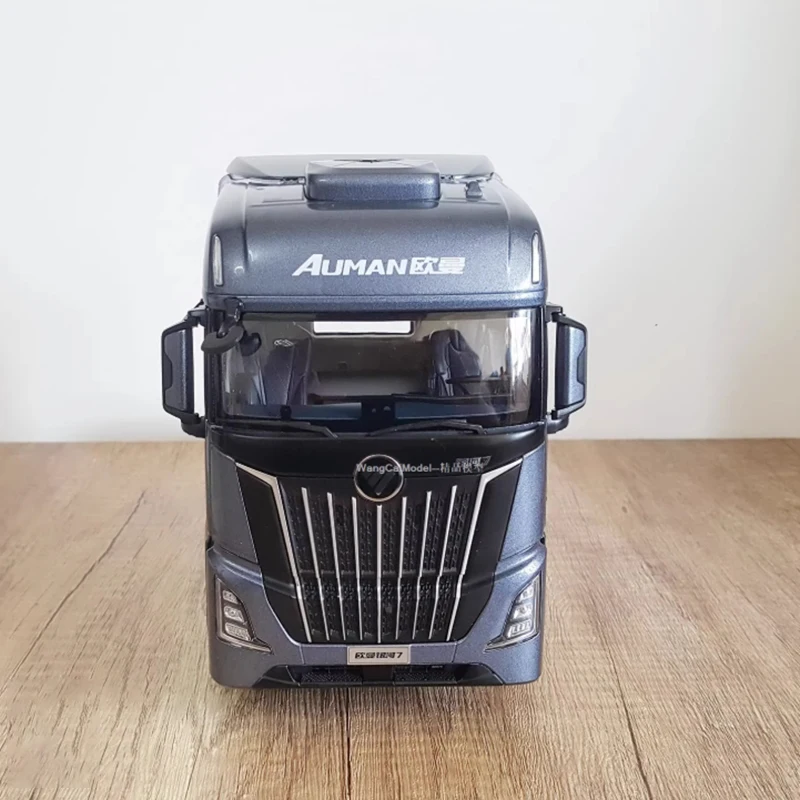 Experience the impressive realism of the 1:24 scale Foton Auman Galaxy 7 diecast tractor model, crafted from alloy and ABS plastic. This highly detailed static display captures the modern cab design, featuring a sleek metallic dark grey or bluish finish, a distinctive front grille with vertical slats in black and metallic accents, integrated headlights, and realistic side mirrors. With a raised sleeper compartment and sculpted doors, it offers a commanding presence perfect for home, office, or bar decor. Designed for adult collectors aged 14 and up, this durable model showcases finely crafted elements, making it an ideal addition to any collection or display setting.
