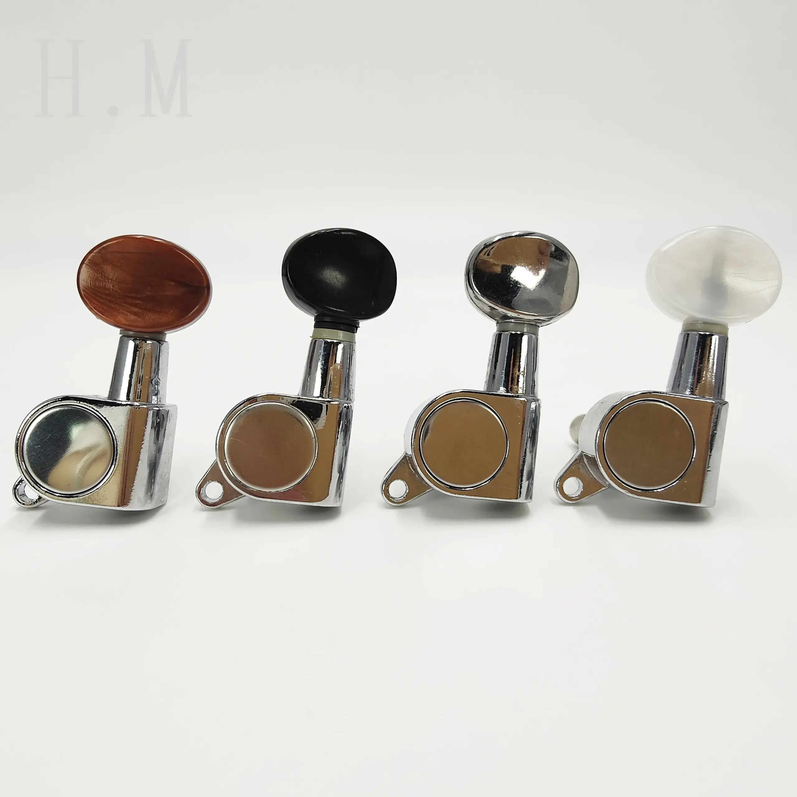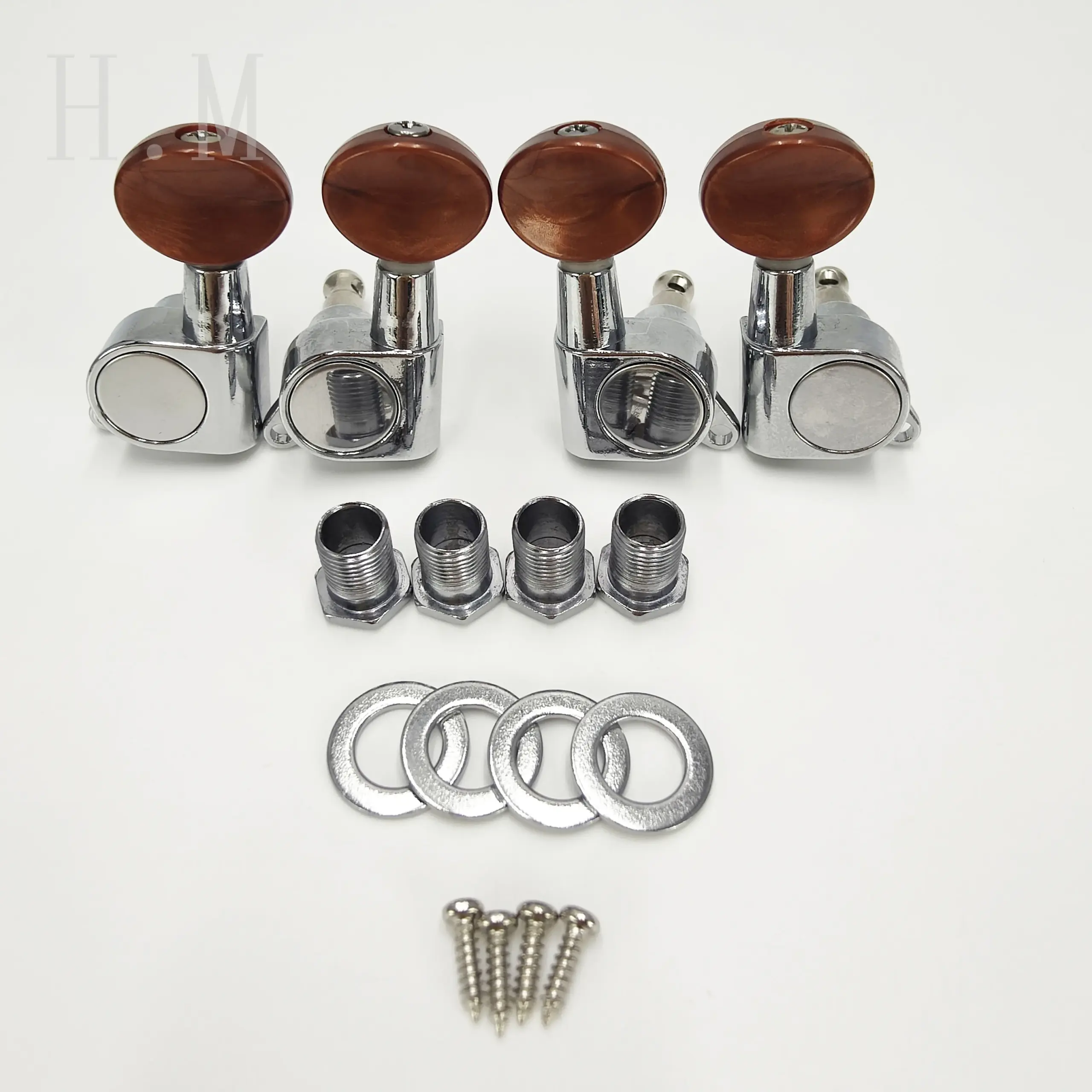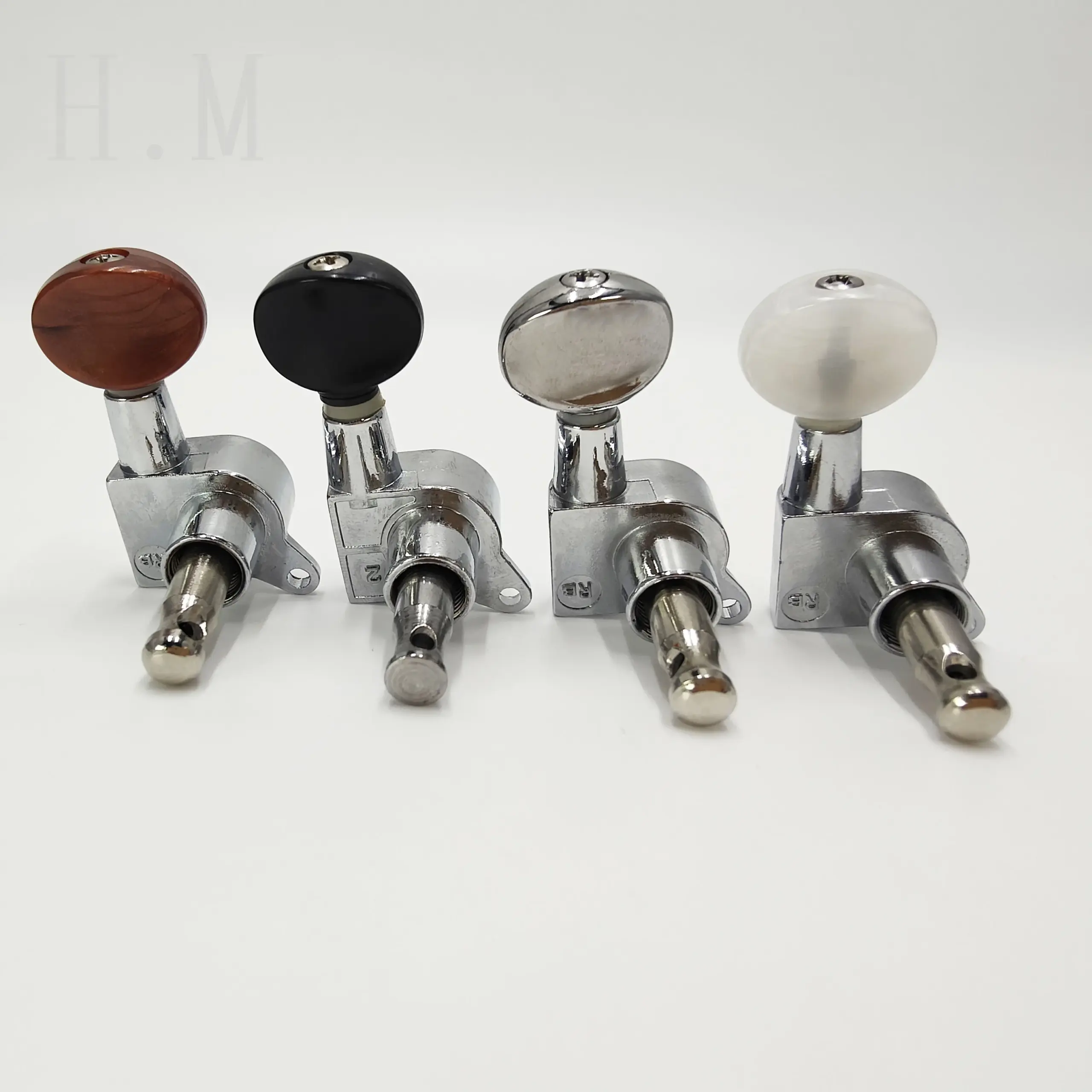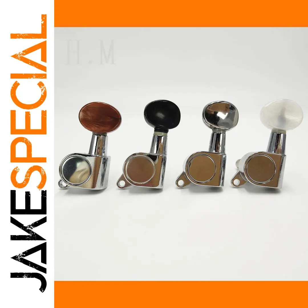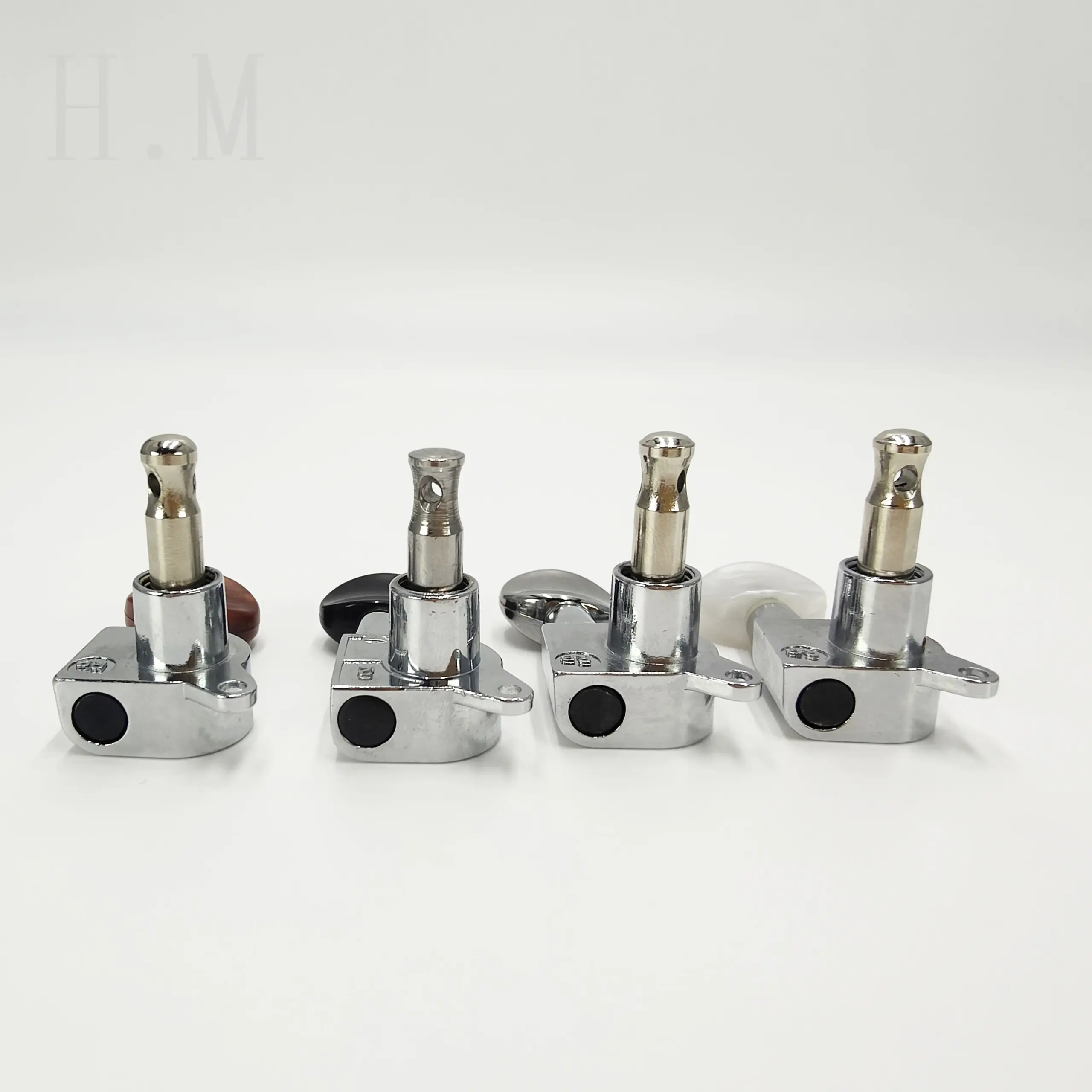Experience the perfect tuning with this set of four ukulele tuning pegs, designed to enhance both the look and sound of your instrument. Crafted with a sleek metallic base, these pegs feature a polished, reflective finish that offers durability and modern appeal. The oval-shaped knobs come in four distinct colors—warm, reddish-brown wood grain, smooth matte black, shiny chrome silver, and luminous pearlescent white—adding visual variety and elegance. Each component is designed for a seamless fit on standard four-string instruments, whether ukulele or short-string guitars. Easy to install and adjust, these tuning pegs allow you to achieve precise tuning quickly, making them ideal for both beginners and seasoned players looking to upgrade their instrument’s aesthetic and functionality.