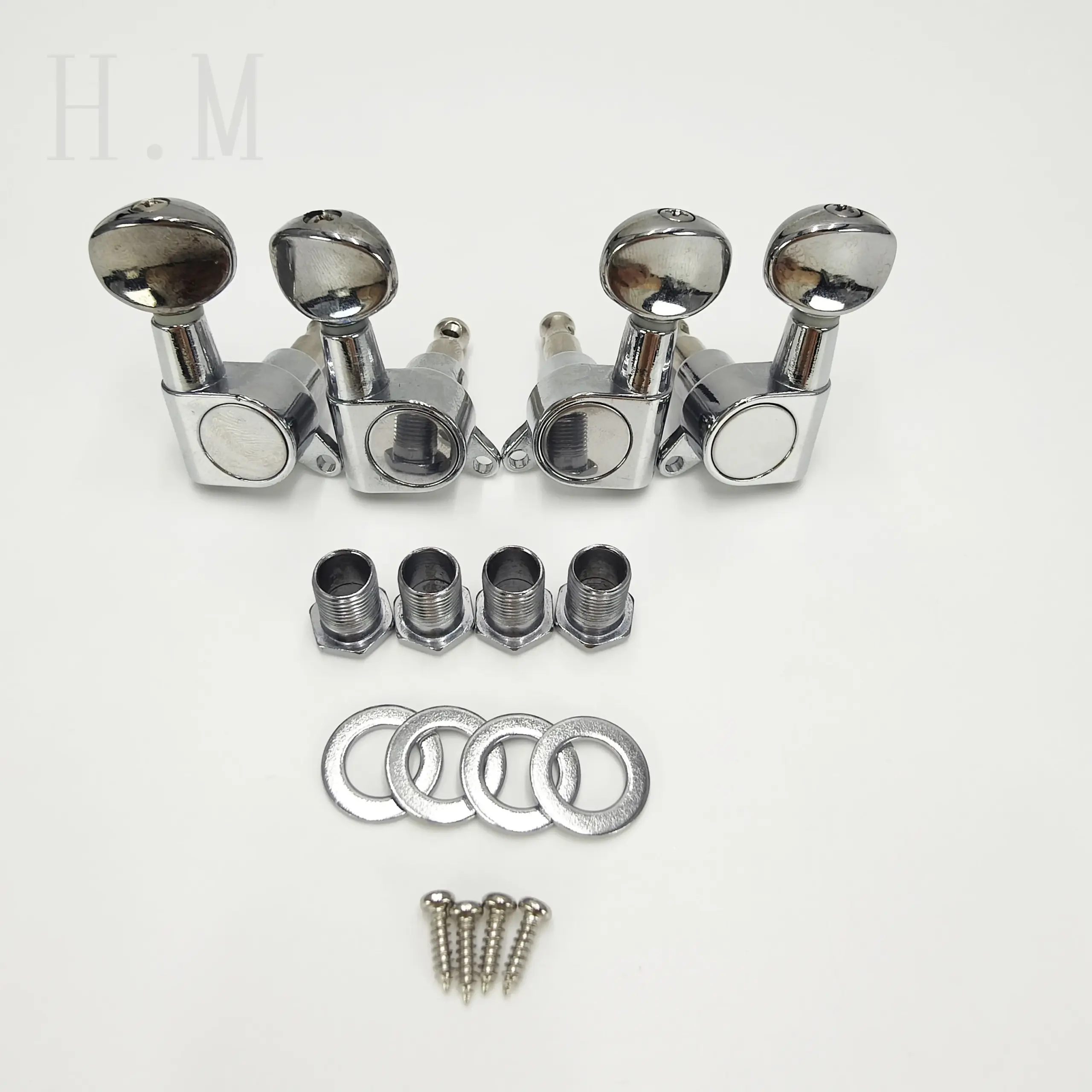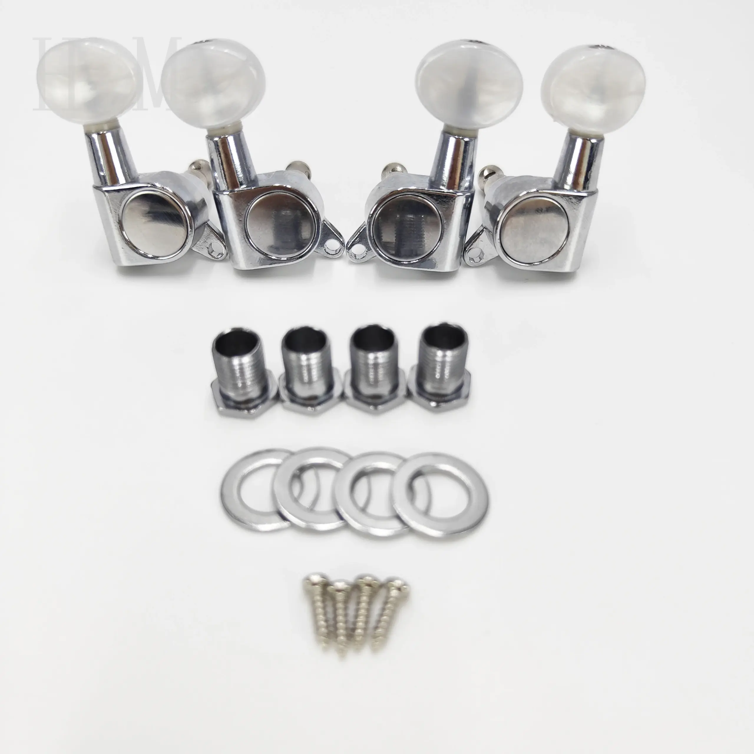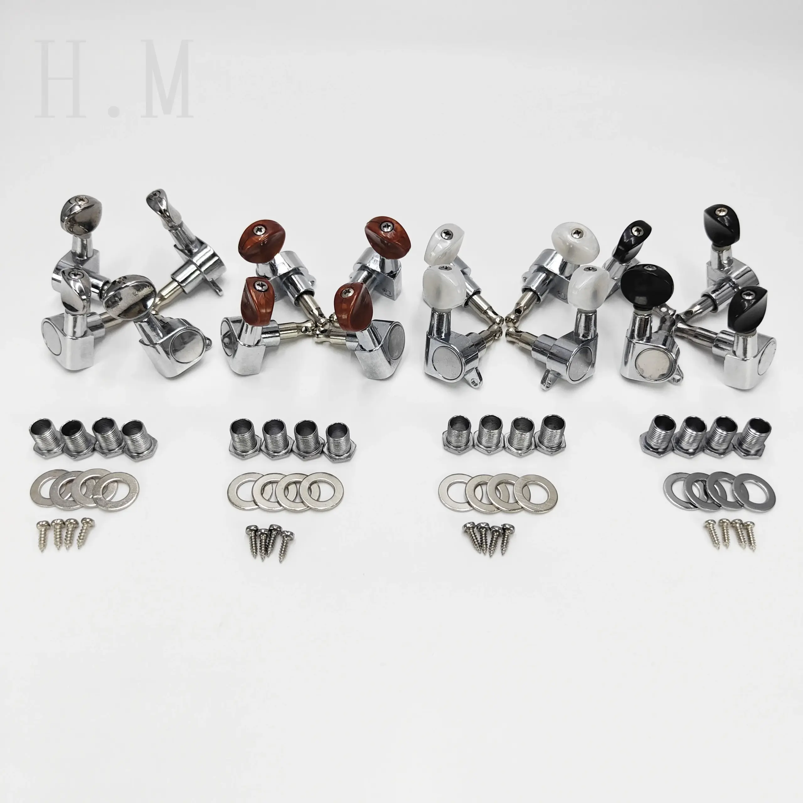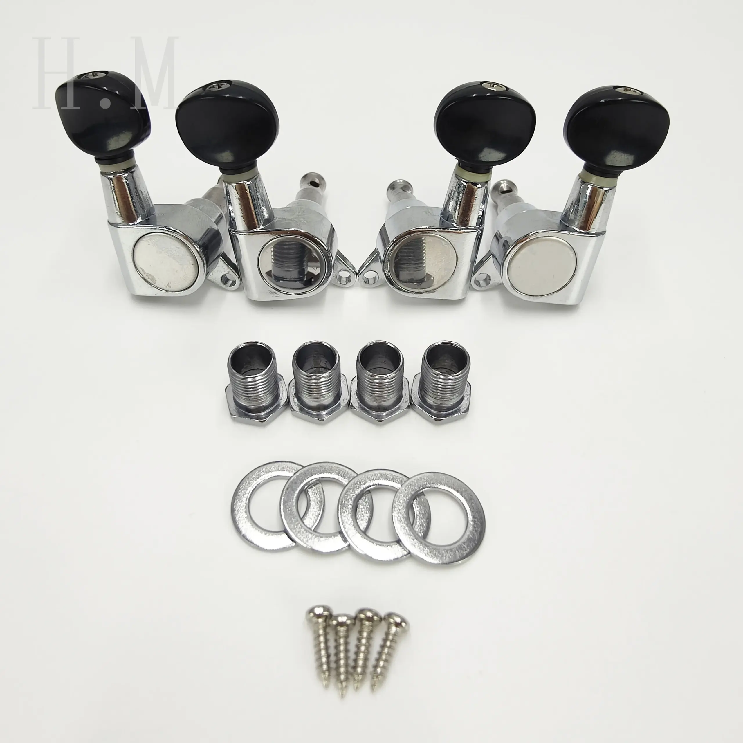 Experience the perfect tuning with this set of four ukulele tuning pegs, designed to enhance both the look and sound of your instrument. Crafted with a sleek metallic base, these pegs feature a polished, reflective finish that offers durability and modern appeal. The oval-shaped knobs come in four distinct colors—warm, reddish-brown wood grain, smooth matte black, shiny chrome silver, and luminous pearlescent white—adding visual variety and elegance. Each component is designed for a seamless fit on standard four-string instruments, whether ukulele or short-string guitars. Easy to install and adjust, these tuning pegs allow you to achieve precise tuning quickly, making them ideal for both beginners and seasoned players looking to upgrade their instrument’s aesthetic and functionality.