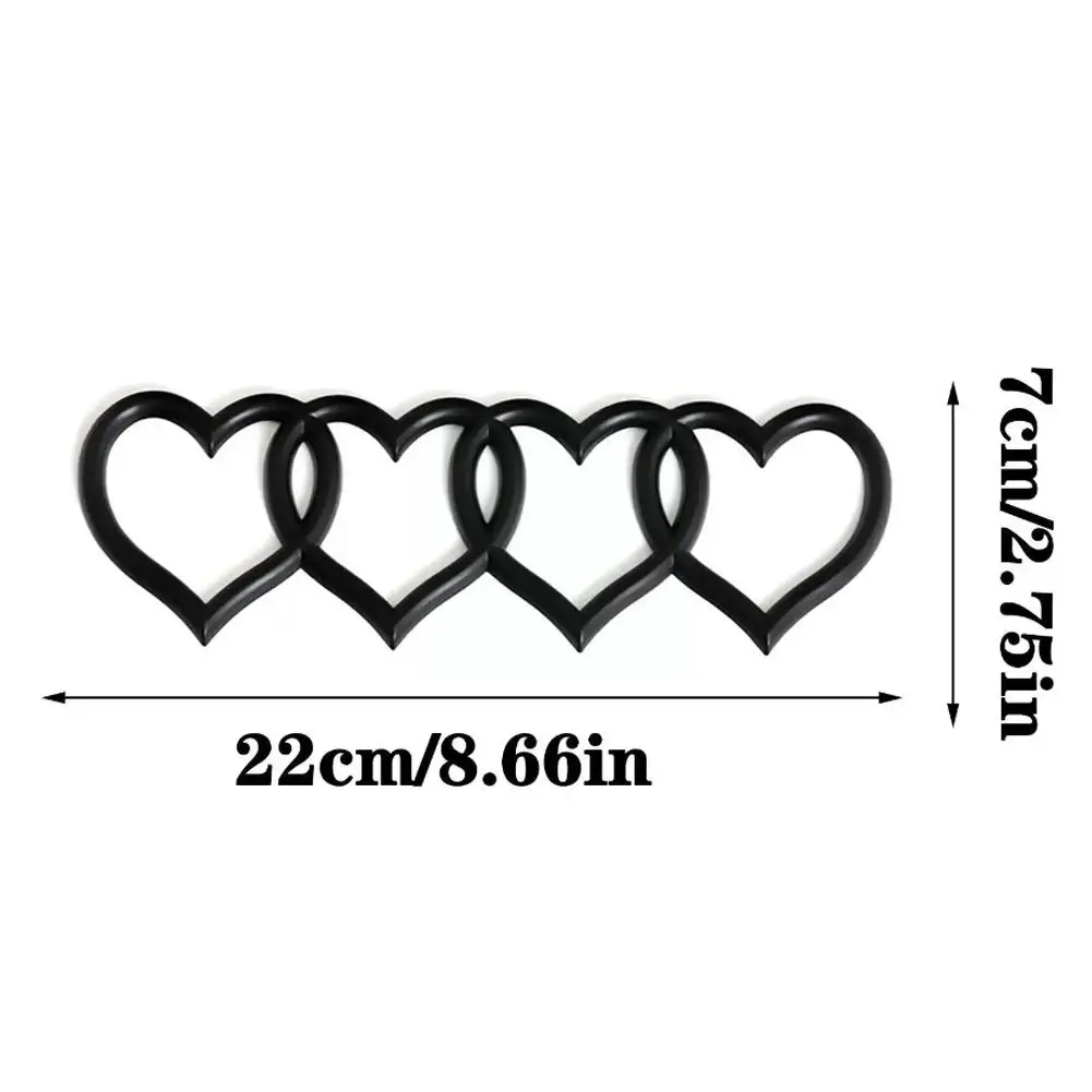 Transform your vehicle's appearance effortlessly with this contemporary four-heart emblem. Crafted from high-quality ABS plastic, it features a glossy, smooth surface that adds a sleek touch to any car's rear. Its modern design of four interconnected hearts outlined in black provides a playful yet elegant aesthetic. Measuring 22 x 7 cm (8.66 x 2.76″), this decorative decal is perfect for customizing your car's tail or body. Easily installed thanks to its self-adhesive backing, it offers durability and resistance against chemicals, ensuring a long-lasting decorative element. Enhance your vehicle’s style and express your personality with this eye-catching emblem, designed for seamless integration and lasting appeal.