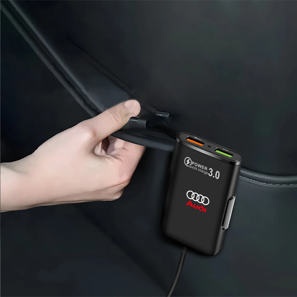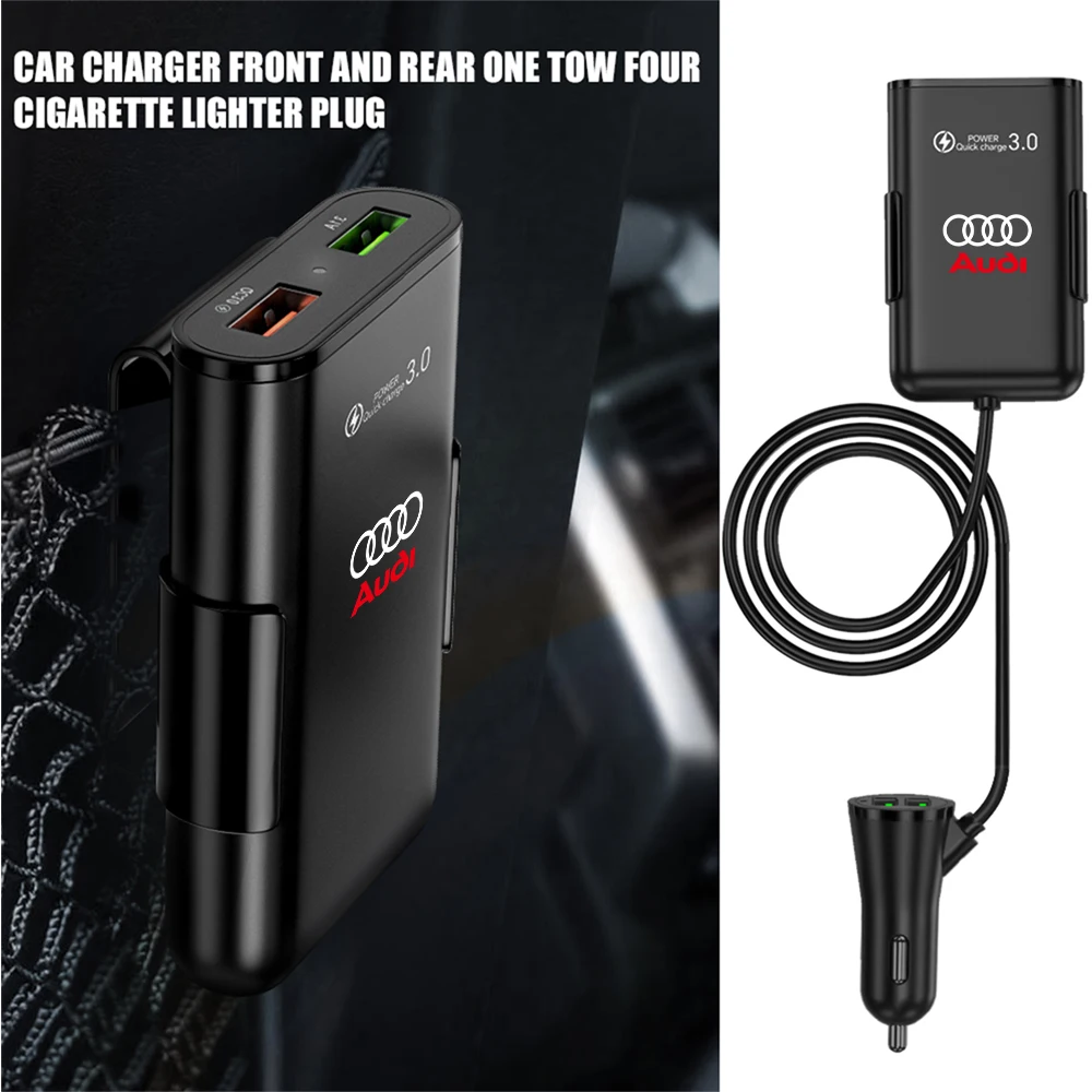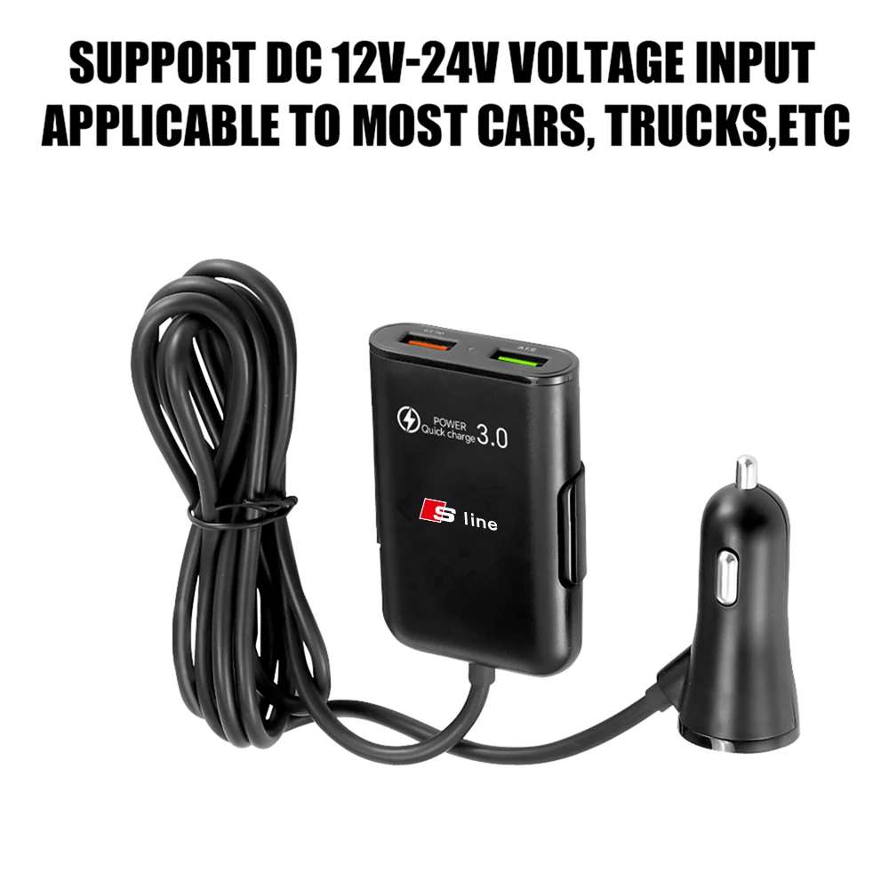 Experience seamless in-car charging with this sleek, black four-in-one car charger, designed for versatility and safety. Compatible with a wide range of devices, including smartphones, tablets, power banks, and dash cameras, it supports QC3.0 fast charging and works with input voltages from 12V to 24V, making it perfect for cars, SUVs, trucks, and off-road vehicles. Crafted from durable ABS material, it features a temperature control chip and 5-level circuit protection to prevent overheating and ensure safe operation during extended use. Its compact rectangular design with a prominent green USB port and subtle branding seamlessly integrates into your vehicle’s interior, providing reliable power on the go.