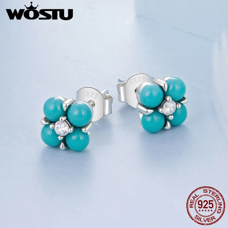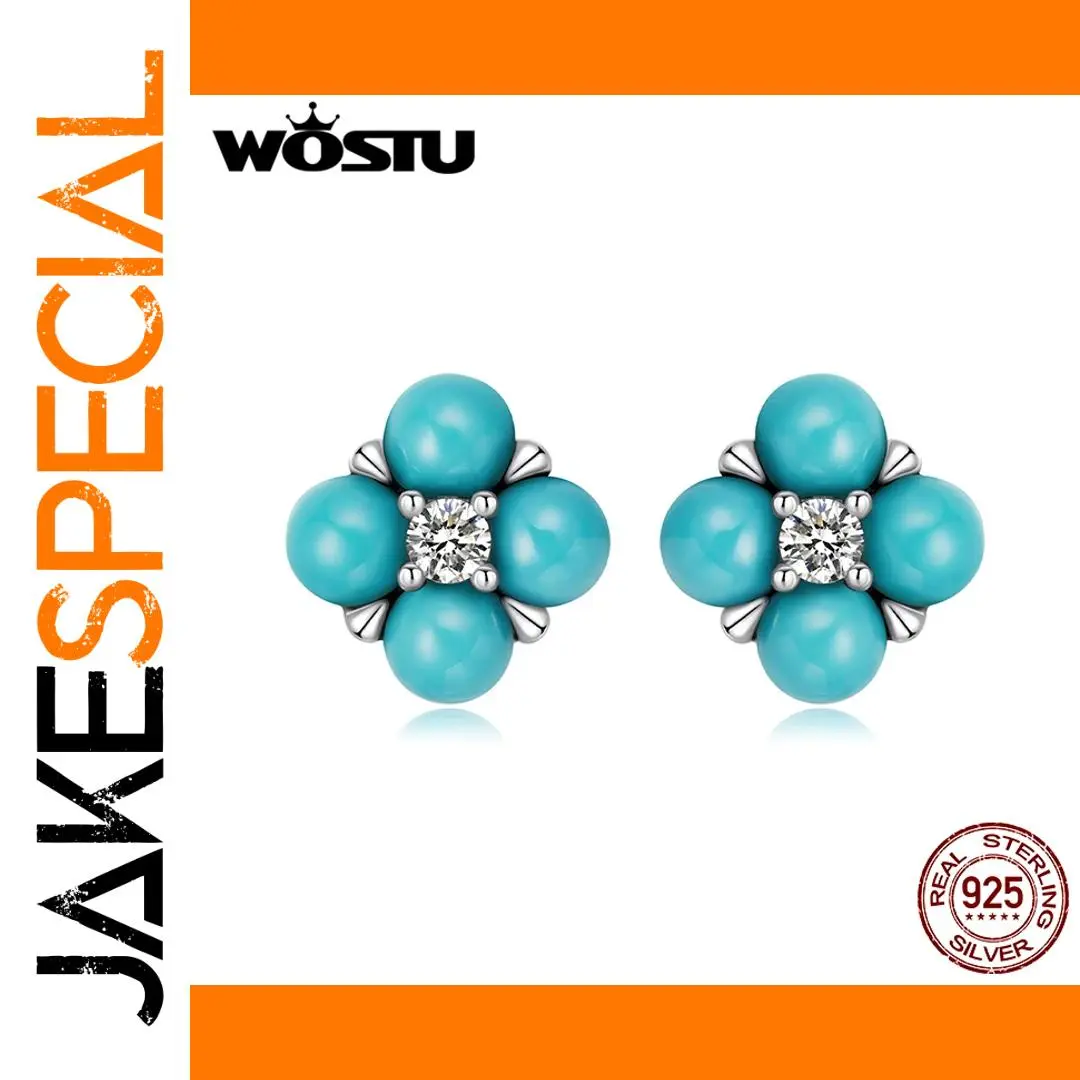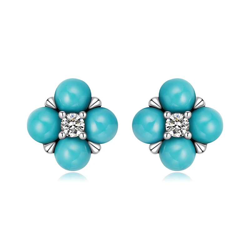Enhance your jewelry collection with these exquisite 925 sterling silver mini stud earrings, featuring a charming four-leaf clover design accented by a central shiny white zircon stone. Each earring measures 0.6 cm and includes four vibrant turquoise gemstones resembling petals, complemented by delicate silver accents. Weighing just 1.4 grams, they provide a lightweight yet elegant touch perfect for parties or special occasions. These fine earrings are secured with push-back closures, stamped with the 925 silver hallmark for authenticity, and come beautifully presented in a gift box. Their classic, plant-inspired style makes them a versatile accessory for any sophisticated look.