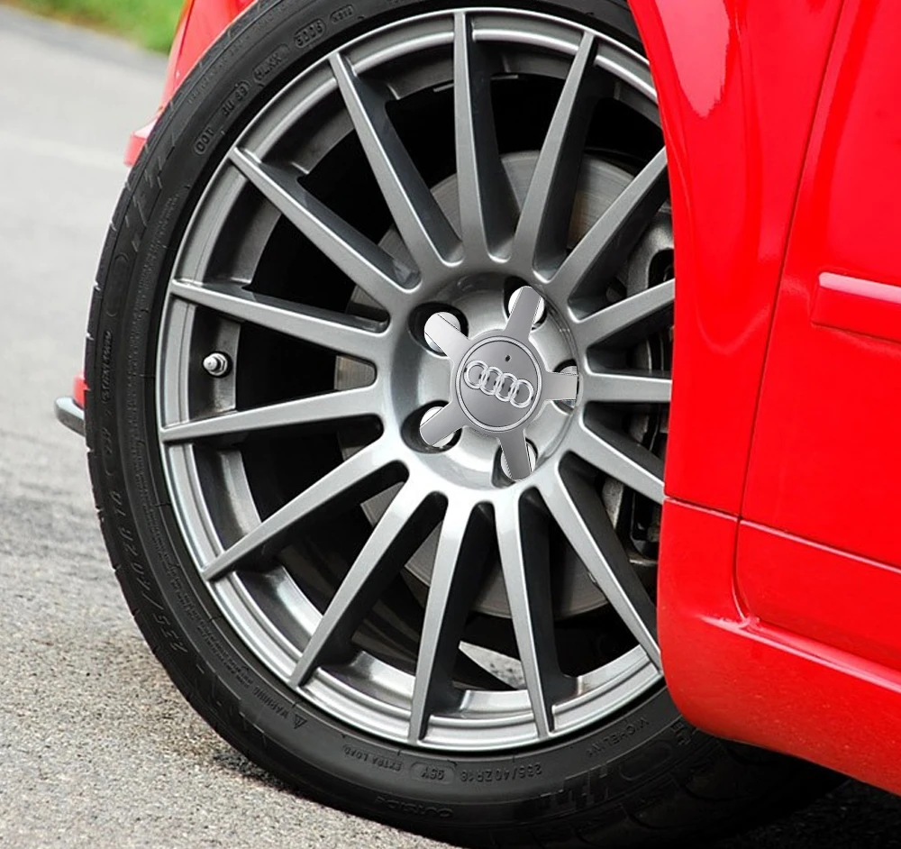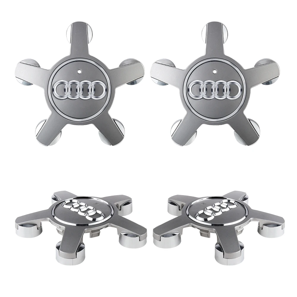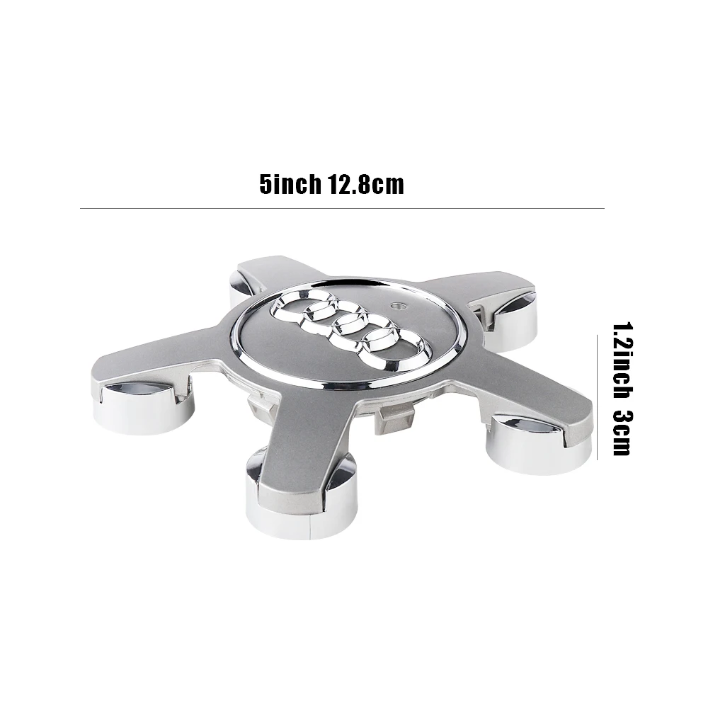 Elevate your vehicle’s appearance with this set of four waterproof ABS wheel center caps, available in sleek matte or metallic gray and black finishes. Each cap has a diameter compatible with models like A1, A3, A4 B8, Q3, Q5, Q7, and TT Mk2 C5, with a recommended size verification due to a 1-2mm margin of error. The aerodynamic design features five rounded claws radiating outward, surrounding a shiny chrome-like four-ring emblem that creates a striking contrast. Manufactured from durable, weather-resistant materials, these caps provide both an elegant upgrade and reliable protection for your wheel hubs, ensuring long-lasting style and performance.