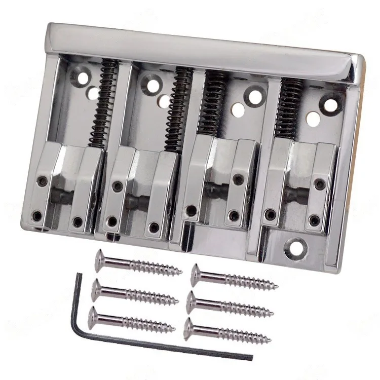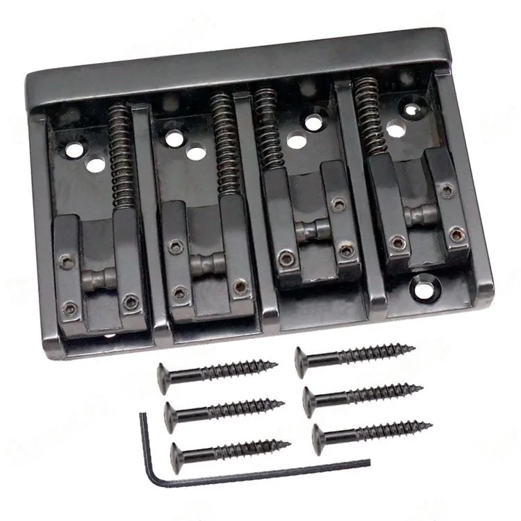 Enhance your bass guitar with this high-quality four-string electric bass bridge tailpiece, designed for durability and precision. Crafted from zinc alloy and iron, it offers a modern, industrial aesthetic in sleek silver or bold black, elevating your instrument's look while maintaining optimal functionality. The symmetrical rectangle shape features adjustable saddles and semi-circular brackets, ensuring fine-tuning and height adjustments for perfect string alignment. With six mounting screw holes and included screws, installation is straightforward and secure. Its slim profile of 5mm adds a refined silhouette to your bass without compromising stability. Designed to fit most electric bass guitars, this tailpiece combines craftsmanship with practical features for superior tone and playability.