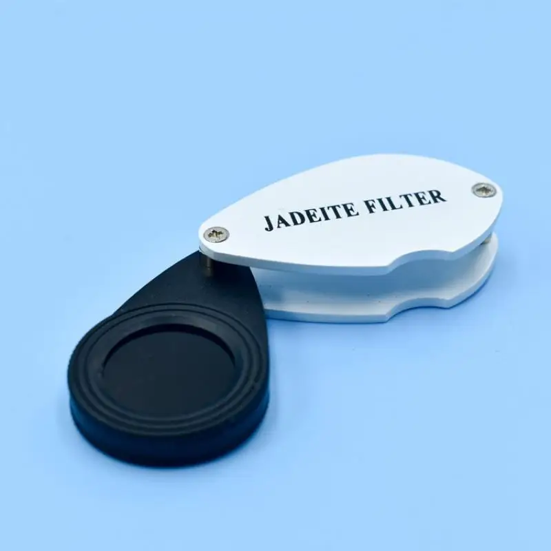 Experience the precision and reliability of this sleek, modern jade identification device. Designed for gemstone enthusiasts and professionals, it features a compact oval shape with smooth, rounded edges that comfortably fit in your hand. The crisp white top surface boldly displays “JADEITE FILTER” in black capital letters, emphasizing its purpose. The device incorporates a 20mm lens that offers clear, close-up evaluation, complemented by built-in LED lighting for optimal visibility even in low-light conditions. Its durable plastic construction ensures lightweight handling while maintaining a sturdy feel. Subtle metallic screws add a hint of industrial style, and layered interior components provide a layered, sophisticated look. This tool is ideal for precise jade testing and identification, combining style with functionality seamlessly.