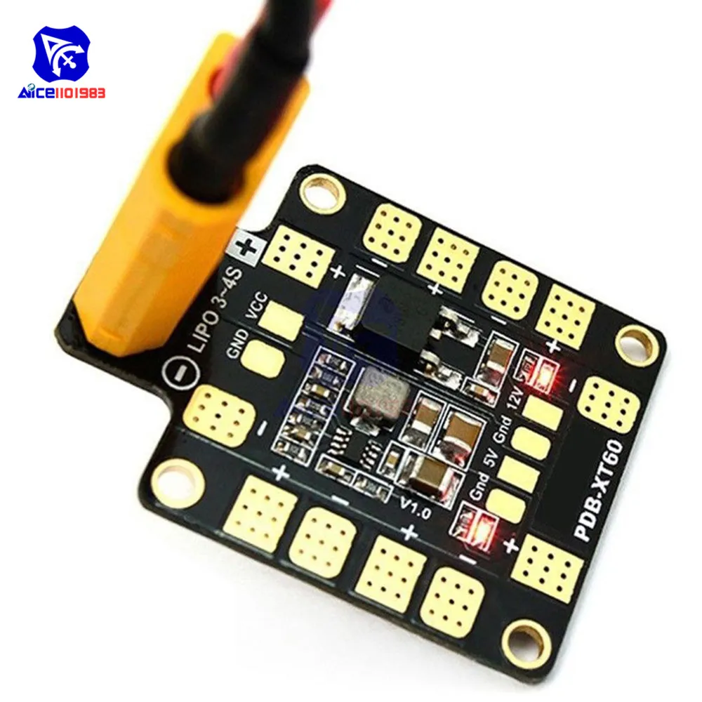 - Includes a high-current gold XT60 socket, supporting input voltages between 9-18V DC (3S-4S LiPo), ensuring a stable power connection suitable for various drone configurations.