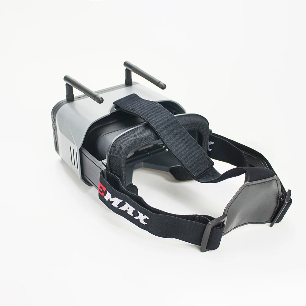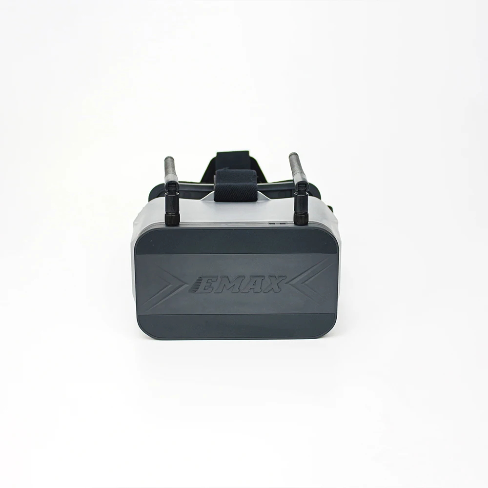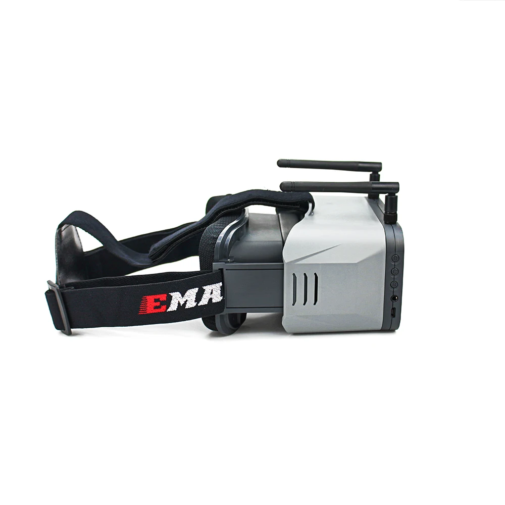 Experience immersive drone racing with this high-quality FPV goggle system. Crafted for enthusiasts, it features a sleek rectangular dark gray faceplate accented with an embossed logo on the side, providing a modern and durable look. The dual black antennas mounted on top improve signal reception, ensuring you maintain a clear live feed during fast-paced flights. With a 4.3-inch display, these goggles deliver sharp visuals that bring your drone’s camera feed to life. The adjustable black elastic strap with bold red and white lettering guarantees a secure, comfortable fit for extended flying sessions. Designed with a sturdy composite material, this system combines functionality with a sleek aesthetic, ideal for competitive racing or casual drone flying.