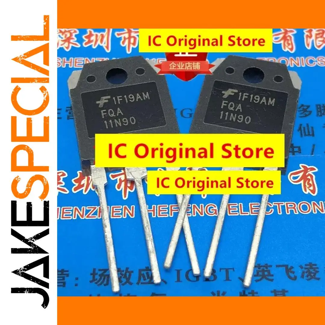 Experience reliable performance with this FQA11N90 field effect transistor in a TO-3P package, featuring a maximum voltage rating of 900V and a continuous drain current of 11.4A. This new surface-mount component is ideal for industrial applications, offering robust electrical characteristics and durability. Each unit is rigorously tested to ensure quality and is protected by electrostatic packaging or cartons, making it a dependable choice for your projects. Its sleek, black rectangular plastic body with white printed markings and silver metal leads combine functionality with a professional aesthetic, providing excellent connection stability and operation across a range of high-voltage, high-current applications.