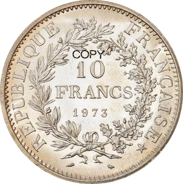 Celebrate the elegance of French history with this stunning replica of the 1973 10 Francs Fifth Republic coin. Crafted from cupronickel with an exquisite plated finish, this coin showcases intricate designs, including the iconic “10 FRANCS” inscription and the beautiful wreath symbolizing peace. Its shiny surface and smooth edges give it a mint condition appearance, making it a perfect addition to any collection. Imagine displaying this elegant piece, evoking conversations and admiration from fellow collectors. This coin is not just a replica; it’s a celebration of heritage and a statement of your refined taste in historical memorabilia.