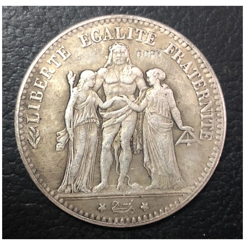 Enhance your collection with this beautifully crafted replica of the historic 1878 French 5 Franc coin. Perfect for collectors, history enthusiasts, or as a unique decorative piece, this coin offers an authentic vintage look. Its detailed design, antique finish, and European style make it a striking addition to any display. Don't miss out on owning a piece that captures the elegance of 19th-century France—order today and bring a touch of history into your collection. It’s an excellent choice for those who value craftsmanship and historical charm.