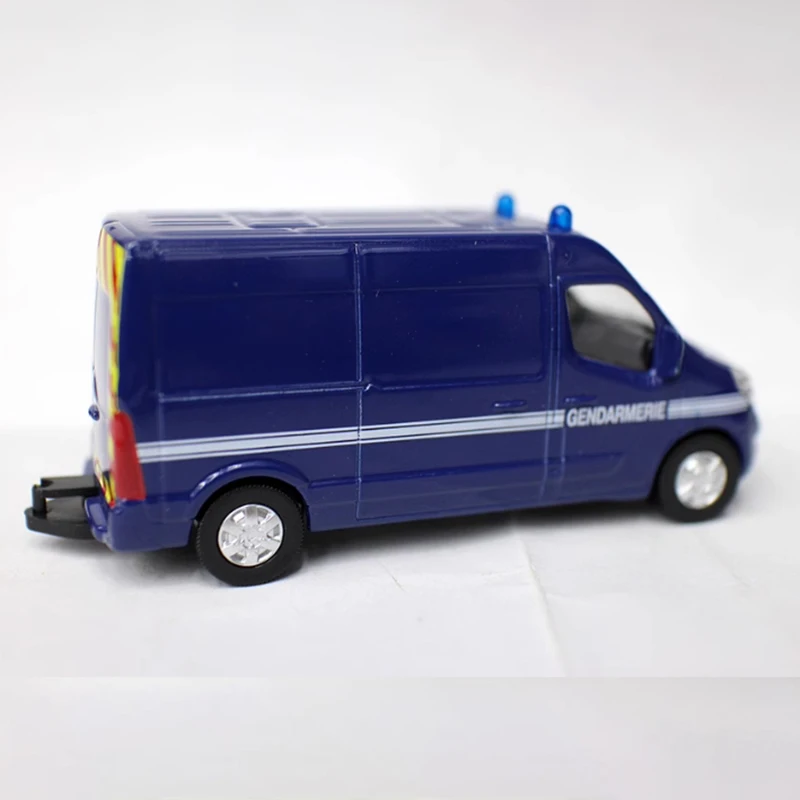 - 1/64 scale diecast alloy model accurately replicates a French Gendarmerie van with vibrant dark blue color and glossy finish for realism and visual appeal.