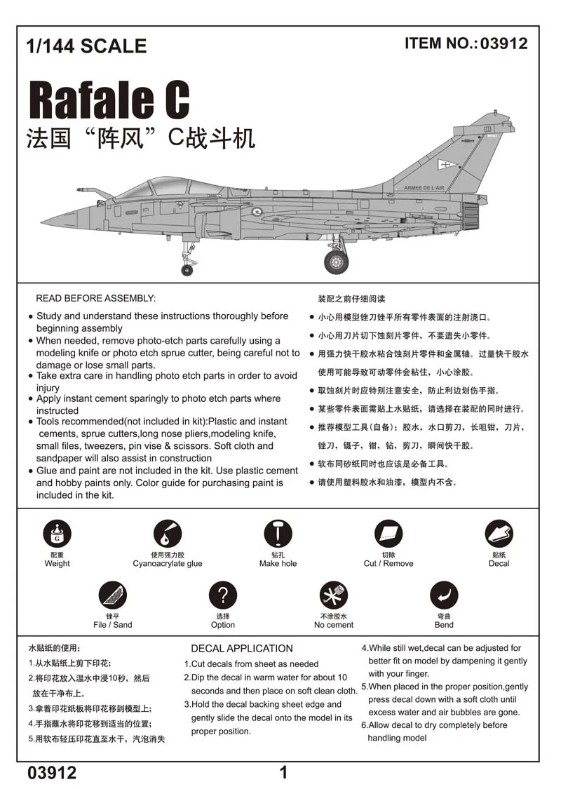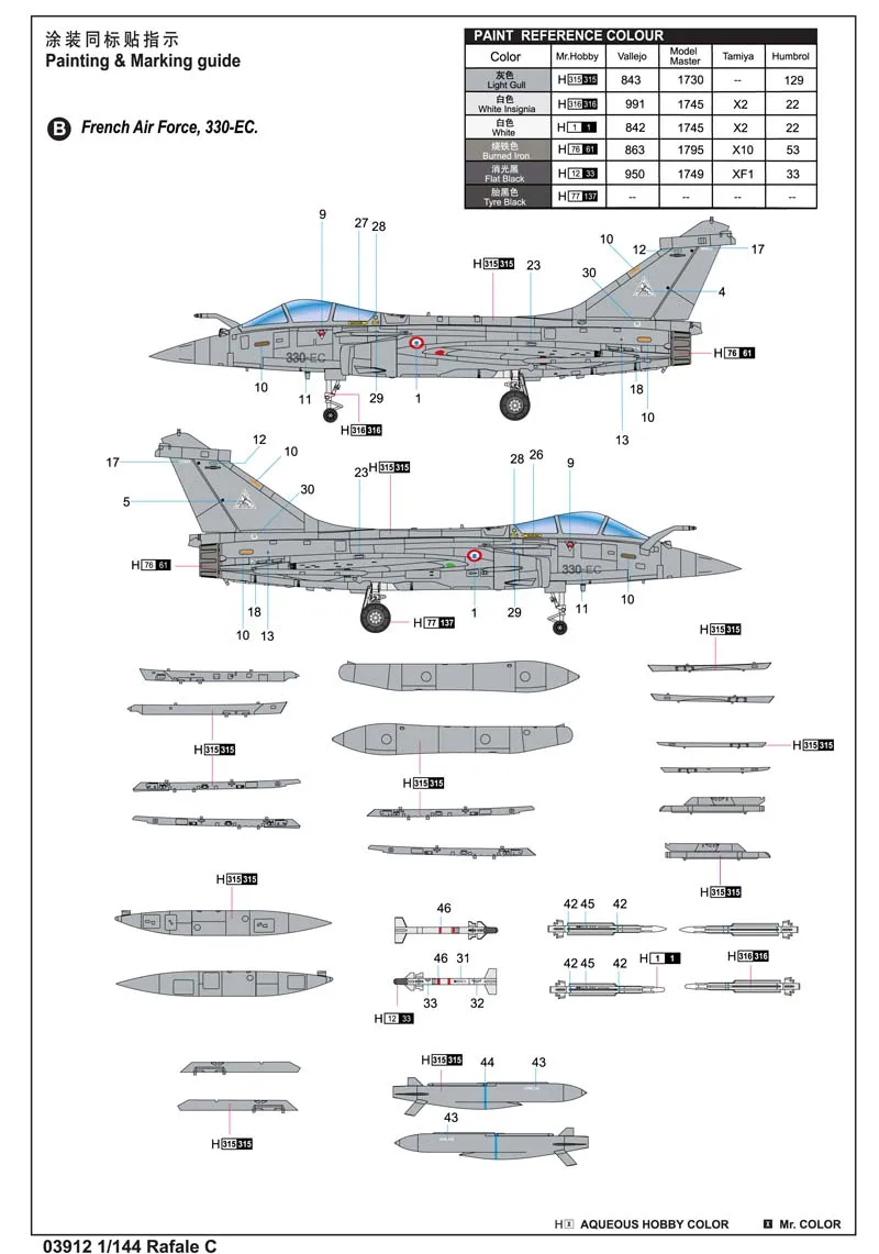Keys features of the Trumpeter 03912 Rafale C Model Kit