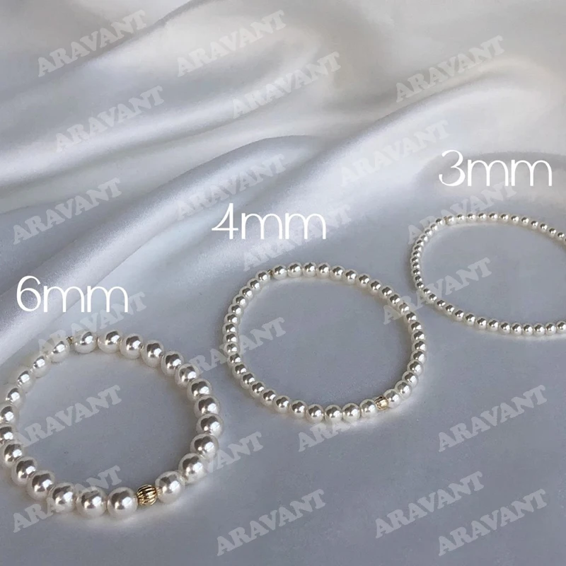 Elevate your style with these elegant sterling silver bracelets featuring lustrous freshwater pearls in 3mm, 4mm, and 6mm sizes. Each strand showcases near-round pearls with a smooth, shiny surface, accented by textured gold-tone spacers for a sophisticated look. Weighing approximately 6.96 grams, these anti-allergy bracelets have a flexible stretch design for a perfect fit. Crafted with genuine 925 sterling silver stamped components, the jewelry combines classic refinement with modern fashion, making it ideal for parties and special occasions. Fully certified for quality and authenticity, these customizable pieces offer timeless beauty and natural radiance for the discerning woman.