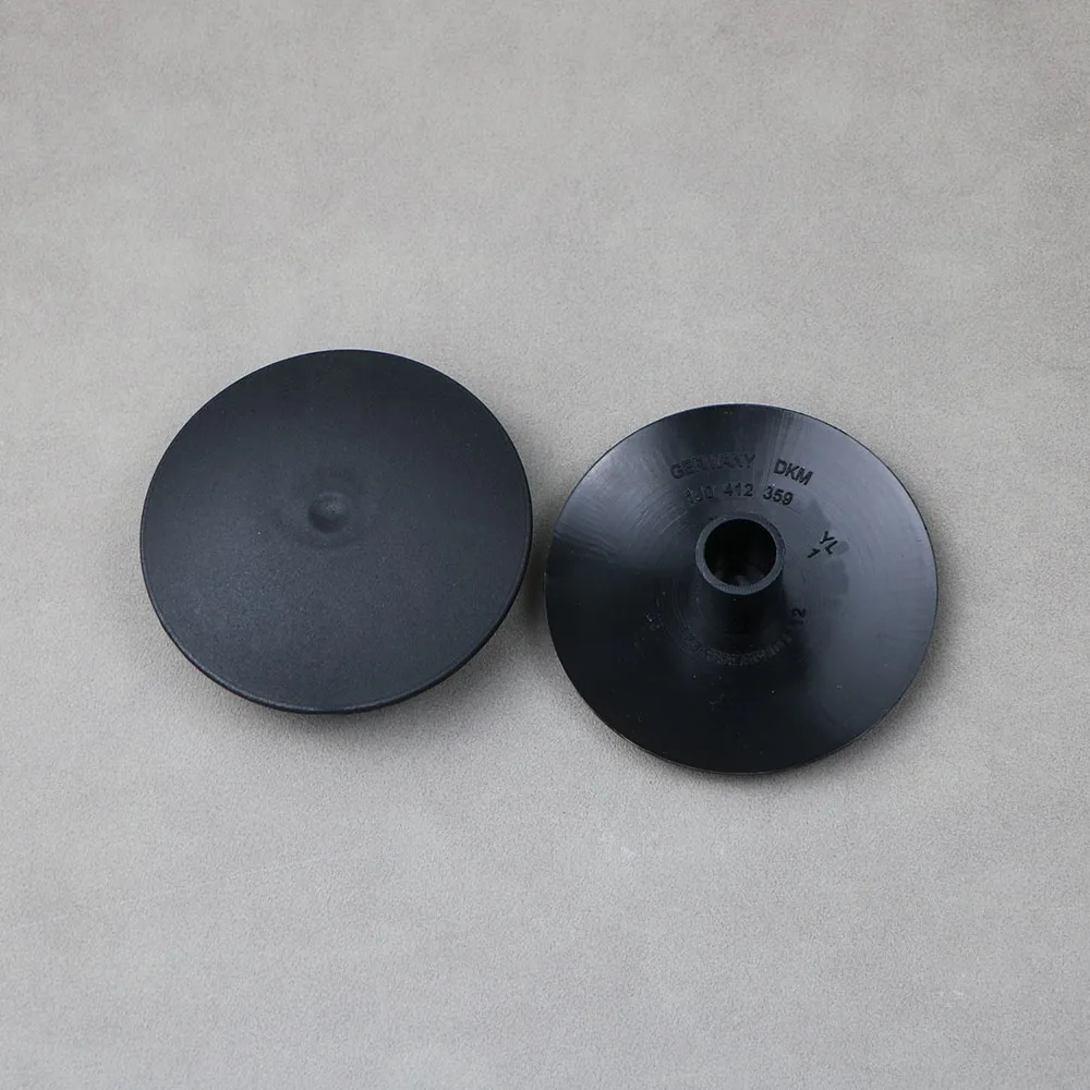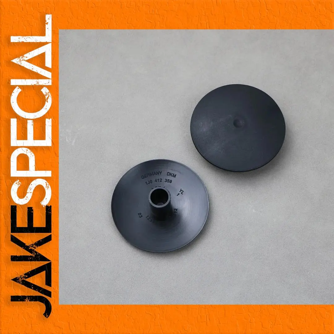 The 2-piece Front Suspension Strut Cap Mount Covers, identified by part number 1J0412359, are essential for maintaining the integrity of various Volkswagen, Audi, Skoda, and Seat models. Crafted from durable black plastic, these caps feature a circular design with a flat surface and a slight dome, ensuring a reliable fit while adding a sleek aesthetic to your vehicle’s suspension system. Each cover measures 7.7 cm in diameter and 1.3 cm in thickness, with a lightweight build of 0.08 kg for easy handling. Whether you're an auto enthusiast or looking to enhance your vehicle’s performance, these caps exemplify functionality and style.