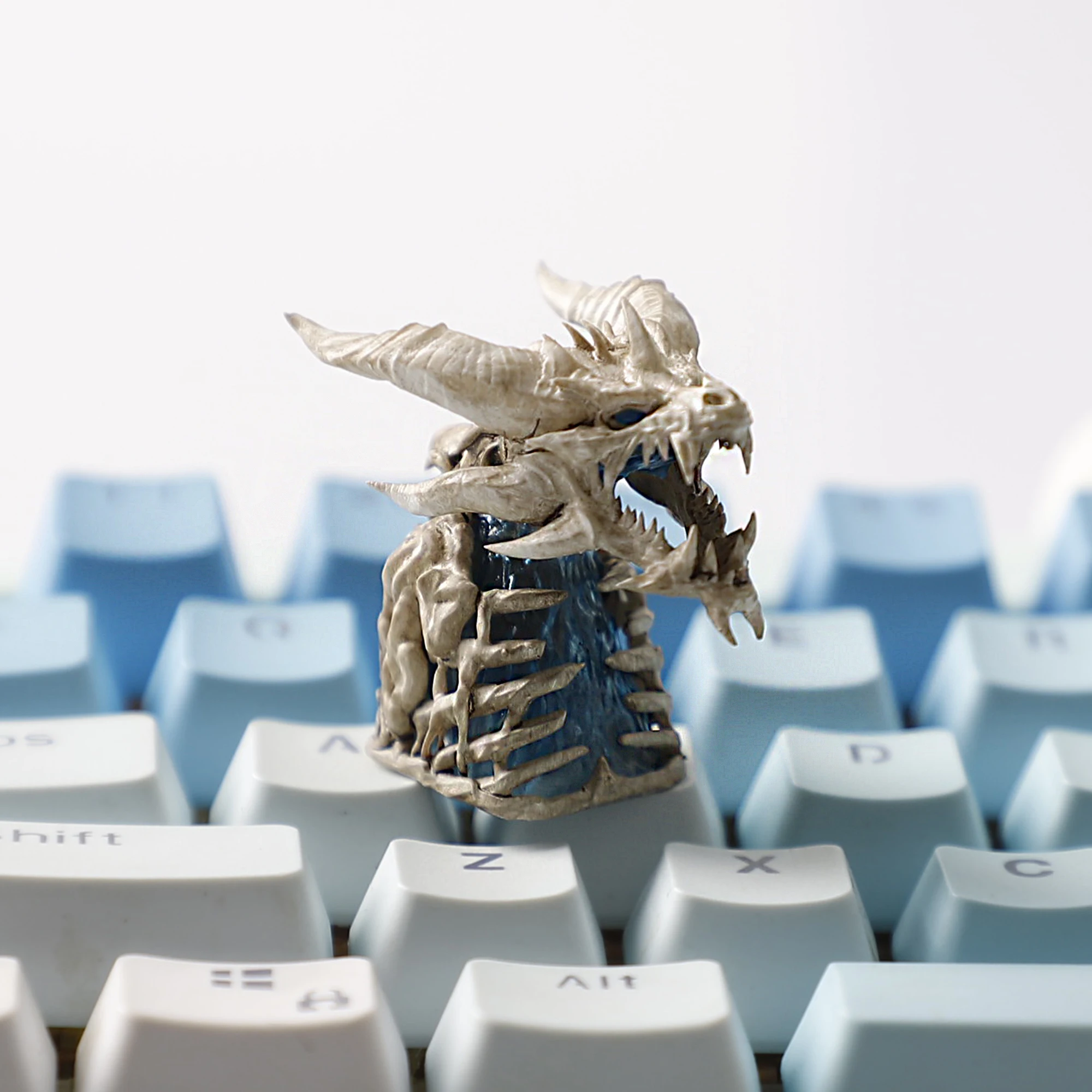 - This resin keycap features a highly detailed Frost Dragon face, with intricate textures and sharp, jagged scales for a fierce fantasy style. Perfect for customizing your mechanical keyboard setup.
