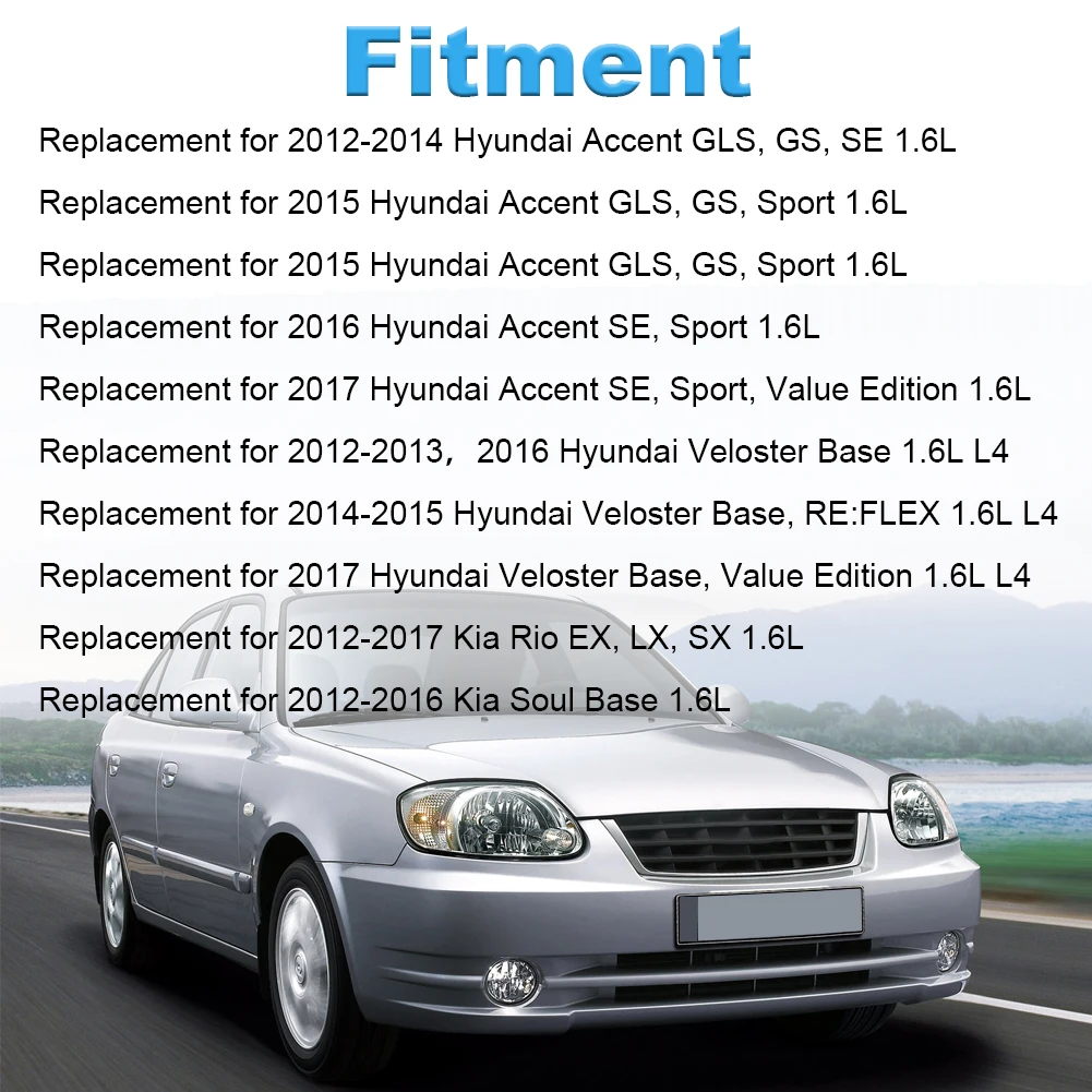 Enhance your vehicle’s performance with this set of four fuel injectors, specifically designed for Hyundai Accent, Veloster, Kia Rio (2012-2017), and Kia Soul (2012-2016) equipped with 1.6L gasoline engines. Crafted with precision, each injector features a durable silver metallic body, black plastic top with electrical connectors, and a blue sealing ring around the spray nozzle for a secure fit. The injectors, with part numbers 35310-2B130, FJ1146, 62125, and 84512108, ensure optimal fuel atomization and reliable operation. Designed for a perfect fit and seamless integration, these injectors offer long-lasting durability and efficiency, making them an excellent choice for your vehicle.