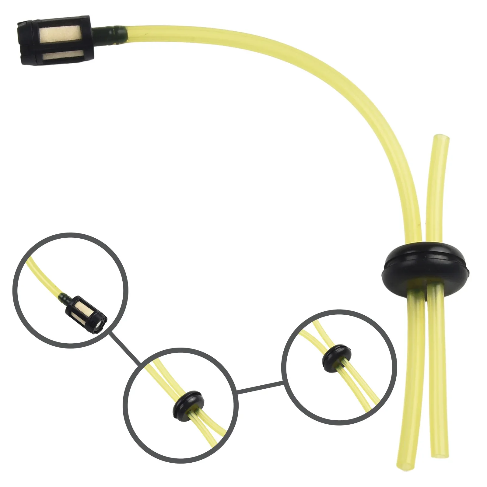 Enhance your multi-tool performance with this durable fuel line assembly designed for TTL488GDO and TTK587GDO models. It features two flexible, translucent yellow fuel pipes that provide flexibility and visibility, a black rubber grommet for secure fitment, and a compact black fuel filter with a cylindrical design for efficient fuel flow. Made from high-quality plastic and rubber materials, this aftermarket replacement ensures reliable operation. Easy to install with no instructions included, but customer support via email is available for guidance. Built to meet demanding power tool needs, it’s the perfect choice to maintain optimal fuel delivery and keep your tools running smoothly.