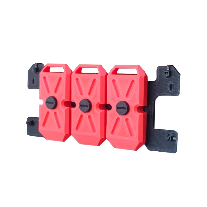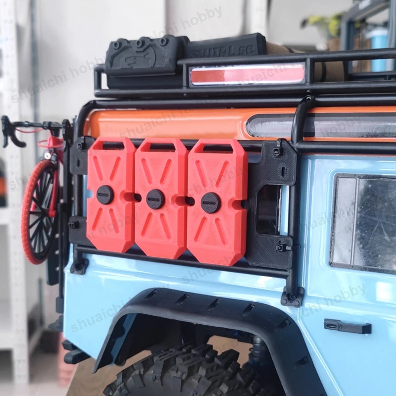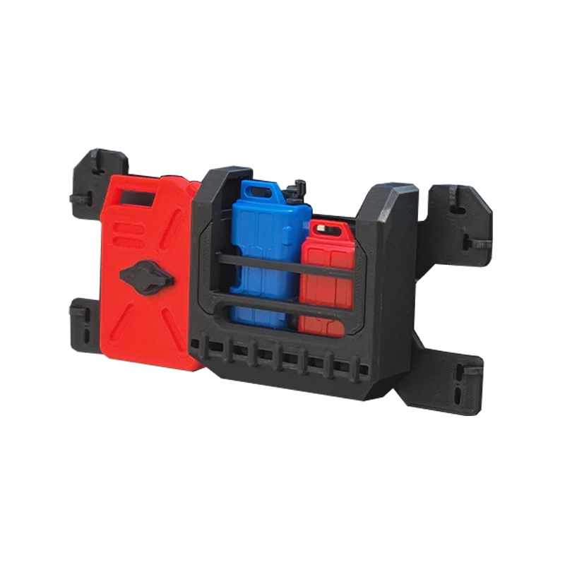 Transform your RC crawler with this meticulously designed spare fuel tank kit, specifically compatible with the MJX West H8H model. The set features two textured, rectangular tanks printed from durable PLA material, painted vividly in red and deep blue, forming a striking contrast against the sleek black protective frame. The compact design offers a highly realistic and rugged appearance, perfect for customization enthusiasts seeking an industrial aesthetic. Easy to assemble, the kit includes all necessary screws and mounting hardware, allowing you to securely attach the tanks to the vehicle’s anti-roll cage. Enhance your model’s durability and authentic appeal with this detailed upgrade set, elevating your RC car’s realism and performance.